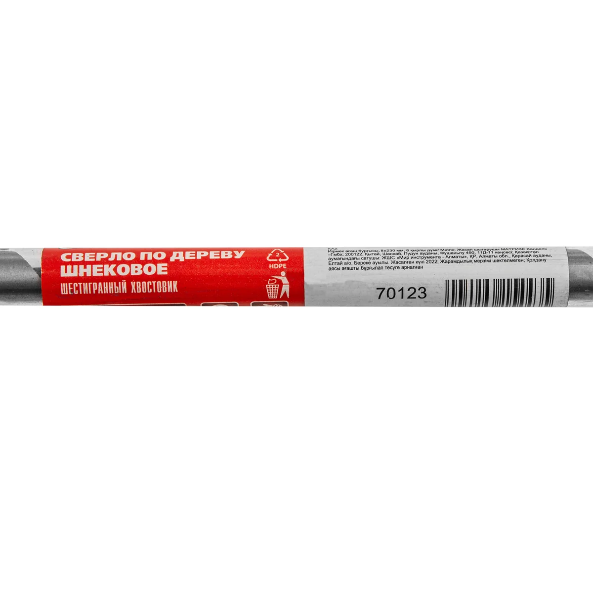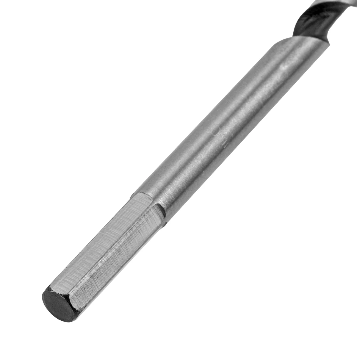 Шнековое сверло по дереву Matrix 70123, размер 10 х 350 мм, с 6-гранным хвостовиком, позволяет осуществлять сверление отверстий на большую глубину. Его можно использовать для работы как с мягкими, так и с твердыми породами древесины. Сверло особой конструкции рассчитано на интенсивное использование с высокими нагрузками в ходе строительных, ремонтных и отделочных работ.Преимущества Сверло имеет высокий ресурс, т.к. изготовлено из инструментальной стали, а режущая часть закалена до твердости 40 HRC. Снаружи шнек обработан до зеркального блеска, поэтому отверстие получается гладким и ровным. Массивная спираль обеспечивает эффективный отвод стружки, позволяя осуществлять глубокое сверление. За счет центрирующего острия снижается осевая нагрузка, что облегчает засверливание, повышает точность работы и предотвращает смещение сверла. Благодаря шестигранному хвостовику сверло не прокручивается в процессе эксплуатации.