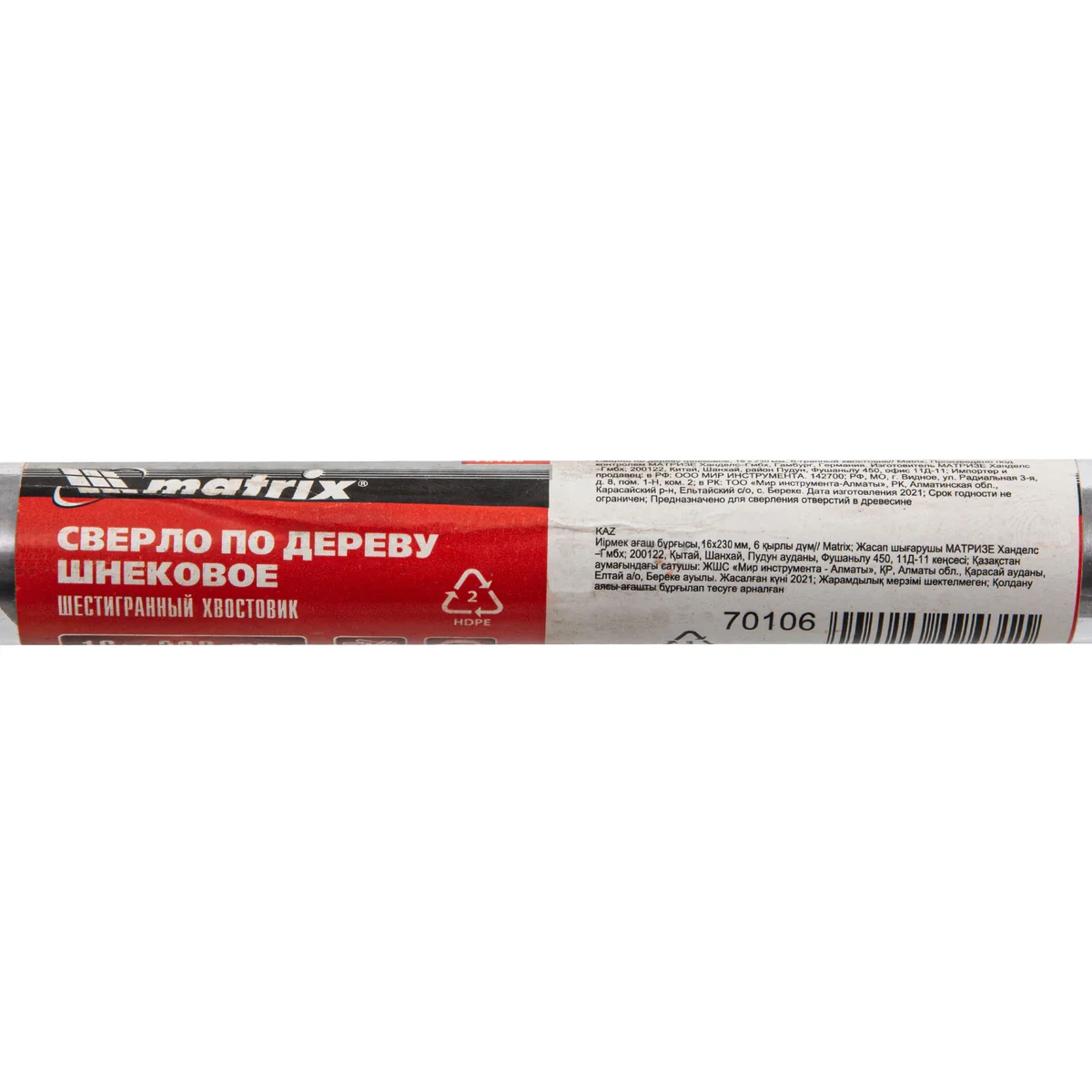 Сверло по дереву шнековое, 16 х 230 мм, шестигранный хвостовик Matrix 70106