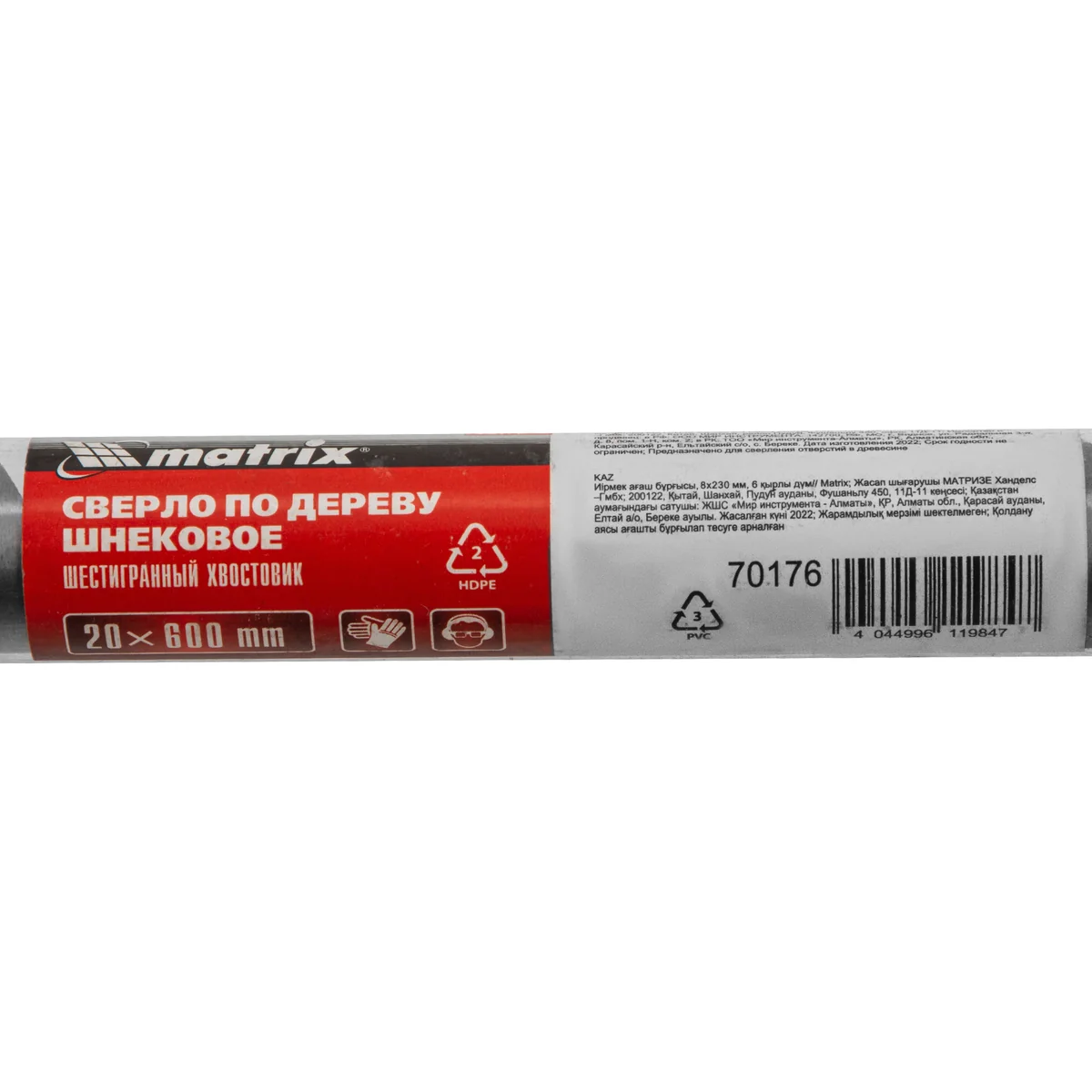 Шнековое сверло по дереву Matrix 70176, размер 20 х 600 мм, с 6-гранным хвостовиком, позволяет осуществлять сверление отверстий на большую глубину. Его можно использовать для работы как с мягкими, так и с твердыми породами древесины. Сверло особой конструкции рассчитано на интенсивное использование с высокими нагрузками в ходе строительных, ремонтных и отделочных работ.ПреимуществаСверло имеет высокий ресурс, т.к. изготовлено из инструментальной стали, а режущая часть закалена до твердости 40 HRC.Снаружи шнек обработан до зеркального блеска, поэтому отверстие получается гладким и ровным.Массивная спираль обеспечивает эффективный отвод стружки, позволяя осуществлять глубокое сверление.За счет центрирующего острия снижается осевая нагрузка, что облегчает засверливание, повышает точность работы и предотвращает смещение сверла.Благодаря шестигранному хвостовику сверло не прокручивается в процессе эксплуатации.