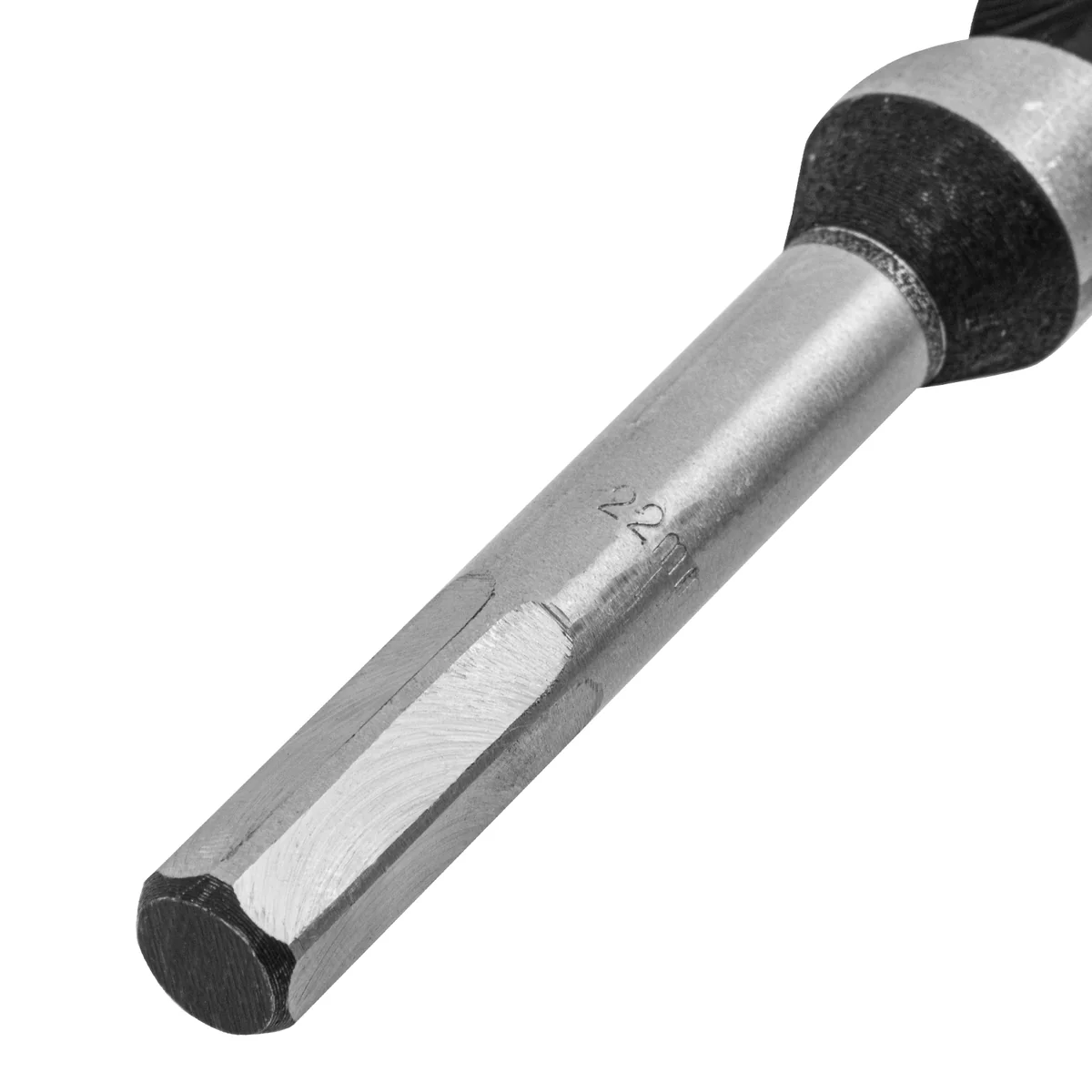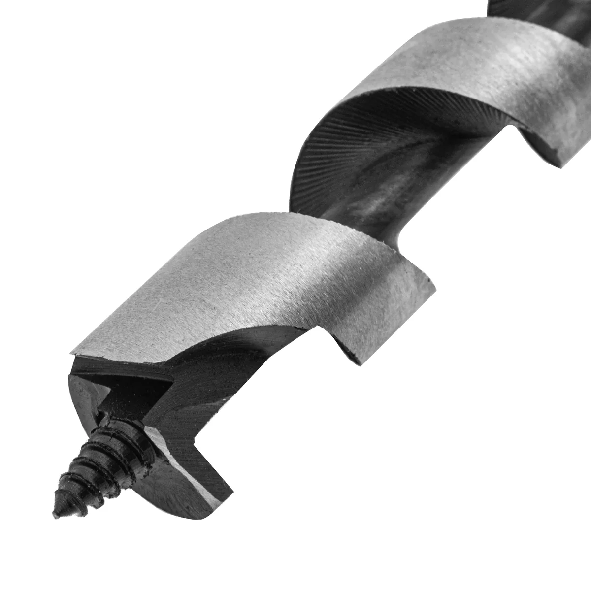 Шнековое сверло по дереву Matrix 70109, размер 22 х 230 мм, с 6-гранным хвостовиком, позволяет осуществлять сверление отверстий на большую глубину. Его можно использовать для работы как с мягкими, так и с твердыми породами древесины. Сверло особой конструкции рассчитано на интенсивное использование с высокими нагрузками в ходе строительных, ремонтных и отделочных работ.ПреимуществаСверло имеет высокий ресурс, т.к. изготовлено из инструментальной стали, а режущая часть закалена до твердости 40 HRC.Снаружи шнек обработан до зеркального блеска, поэтому отверстие получается гладким и ровным.Массивная спираль обеспечивает эффективный отвод стружки, позволяя осуществлять глубокое сверление.За счет центрирующего острия снижается осевая нагрузка, что облегчает засверливание, повышает точность работы и предотвращает смещение сверла.Благодаря шестигранному хвостовику сверло не прокручивается в процессе эксплуатации.