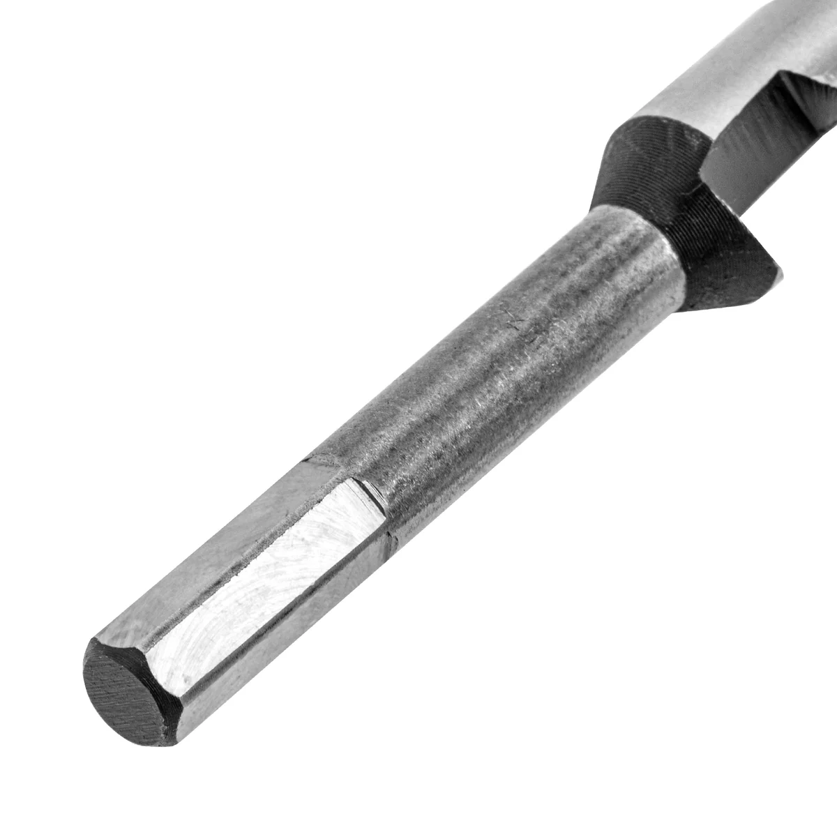 Шнековое сверло по дереву Matrix 70144, размер 22 х 350 мм, с 6-гранным хвостовиком, позволяет осуществлять сверление отверстий на большую глубину. Его можно использовать для работы как с мягкими, так и с твердыми породами древесины. Сверло особой конструкции рассчитано на интенсивное использование с высокими нагрузками в ходе строительных, ремонтных и отделочных работ.ПреимуществаСверло имеет высокий ресурс, т.к. изготовлено из инструментальной стали, а режущая часть закалена до твердости 40 HRC.Снаружи шнек обработан до зеркального блеска, поэтому отверстие получается гладким и ровным.Массивная спираль обеспечивает эффективный отвод стружки, позволяя осуществлять глубокое сверление.За счет центрирующего острия снижается осевая нагрузка, что облегчает засверливание, повышает точность работы и предотвращает смещение сверла.Благодаря шестигранному хвостовику сверло не прокручивается в процессе эксплуатации.