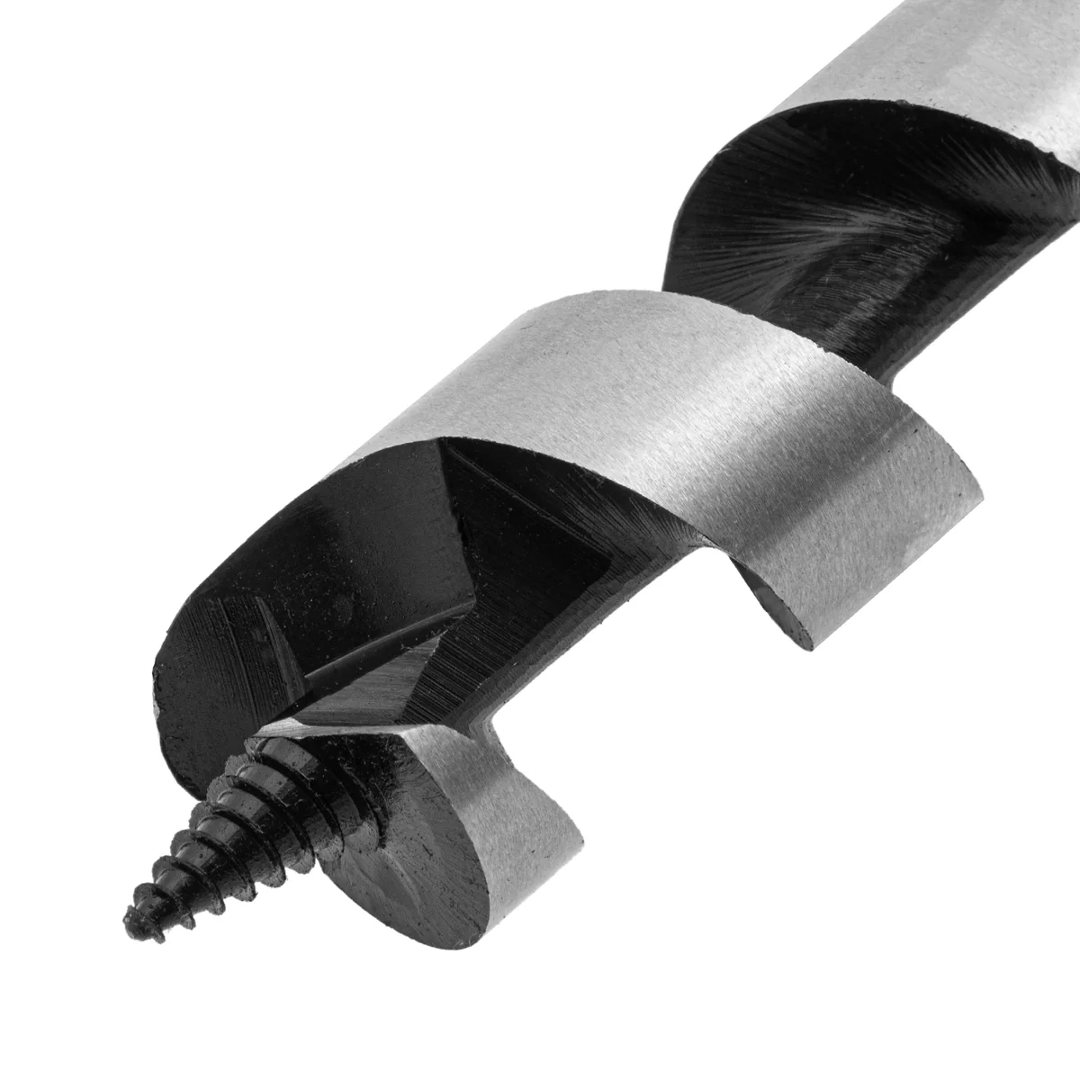 Шнековое сверло по дереву Matrix 70154, размер 30 х 350 мм, с 6-гранным хвостовиком, позволяет осуществлять сверление отверстий на большую глубину. Его можно использовать для работы как с мягкими, так и с твердыми породами древесины. Сверло особой конструкции рассчитано на интенсивное использование с высокими нагрузками в ходе строительных, ремонтных и отделочных работ.ПреимуществаСверло имеет высокий ресурс, т.к. изготовлено из инструментальной стали, а режущая часть закалена до твердости 40 HRC.Снаружи шнек обработан до зеркального блеска, поэтому отверстие получается гладким и ровным.Массивная спираль обеспечивает эффективный отвод стружки, позволяя осуществлять глубокое сверление.За счет центрирующего острия снижается осевая нагрузка, что облегчает засверливание, повышает точность работы и предотвращает смещение сверла.Благодаря шестигранному хвостовику сверло не прокручивается в процессе эксплуатации.