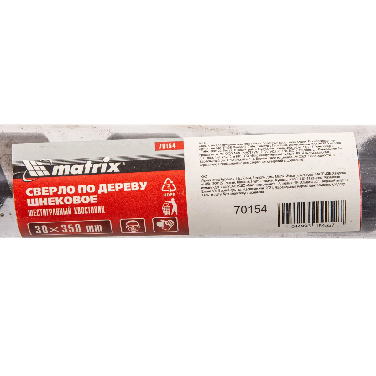 Сверло по дереву шнековое, 30 х 350 мм, шестигранный хвостовик Matrix 70154
