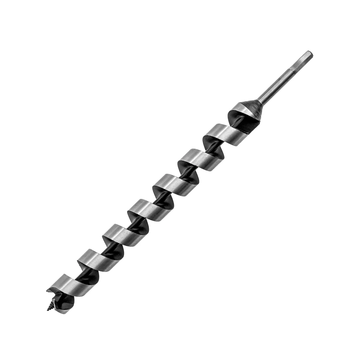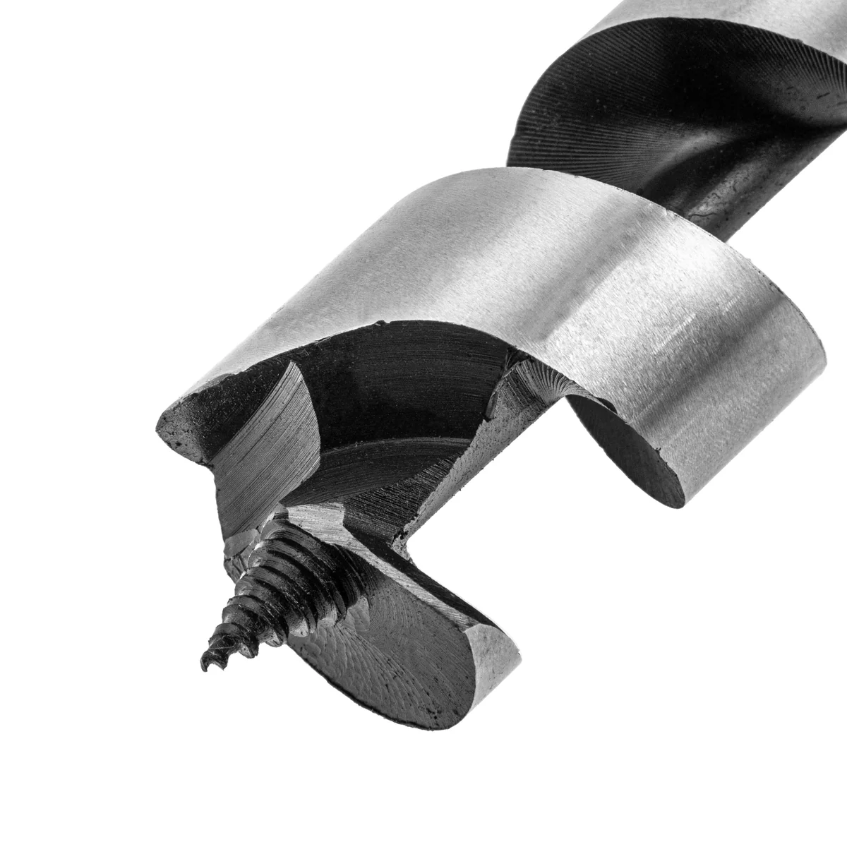 Шнековое сверло по дереву Matrix 70134, размер 38 х 460 мм, с 6-гранным хвостовиком, позволяет осуществлять сверление отверстий на большую глубину. Его можно использовать для работы как с мягкими, так и с твердыми породами древесины. Сверло особой конструкции рассчитано на интенсивное использование с высокими нагрузками в ходе строительных, ремонтных и отделочных работ.ПреимуществаСверло имеет высокий ресурс, т.к. изготовлено из инструментальной стали, а режущая часть закалена до твердости 40 HRC.Снаружи шнек обработан до зеркального блеска, поэтому отверстие получается гладким и ровным.Массивная спираль обеспечивает эффективный отвод стружки, позволяя осуществлять глубокое сверление.За счет центрирующего острия снижается осевая нагрузка, что облегчает засверливание, повышает точность работы и предотвращает смещение сверла.Благодаря шестигранному хвостовику сверло не прокручивается в процессе эксплуатации.