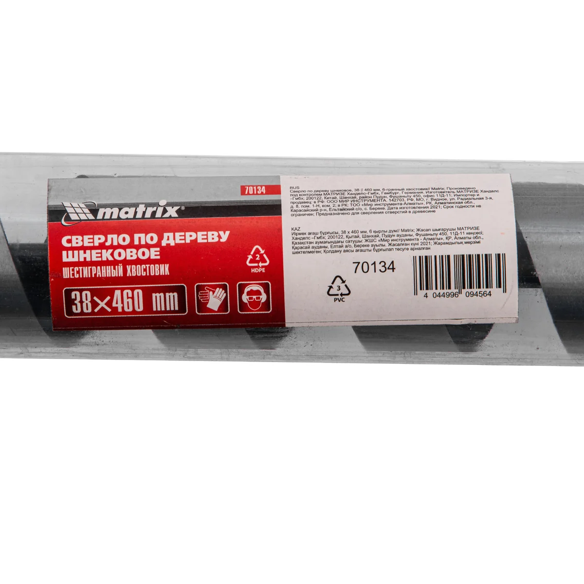 Сверло по дереву шнековое, 38 х 460 мм, шестигранный хвостовик Matrix 70134