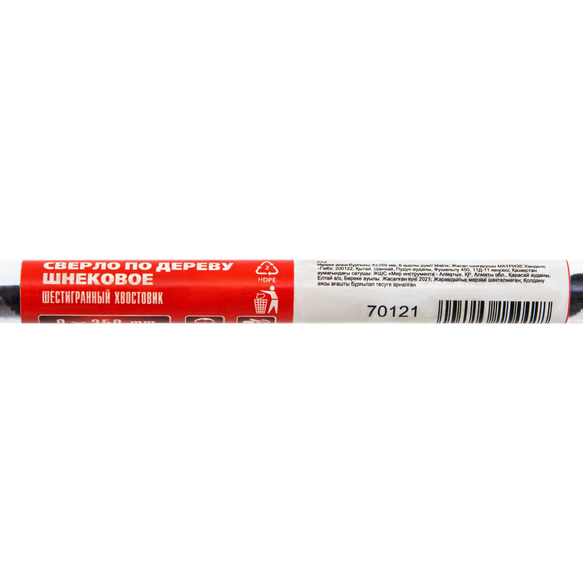 Сверло по дереву шнековое, 8 х 350 мм, шестигранный хвостовик Matrix 70121