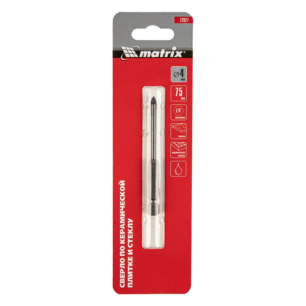 Сверло по керамической плитке и стеклу, 4 мм, шестигранный хвостовик// Matrix 72827