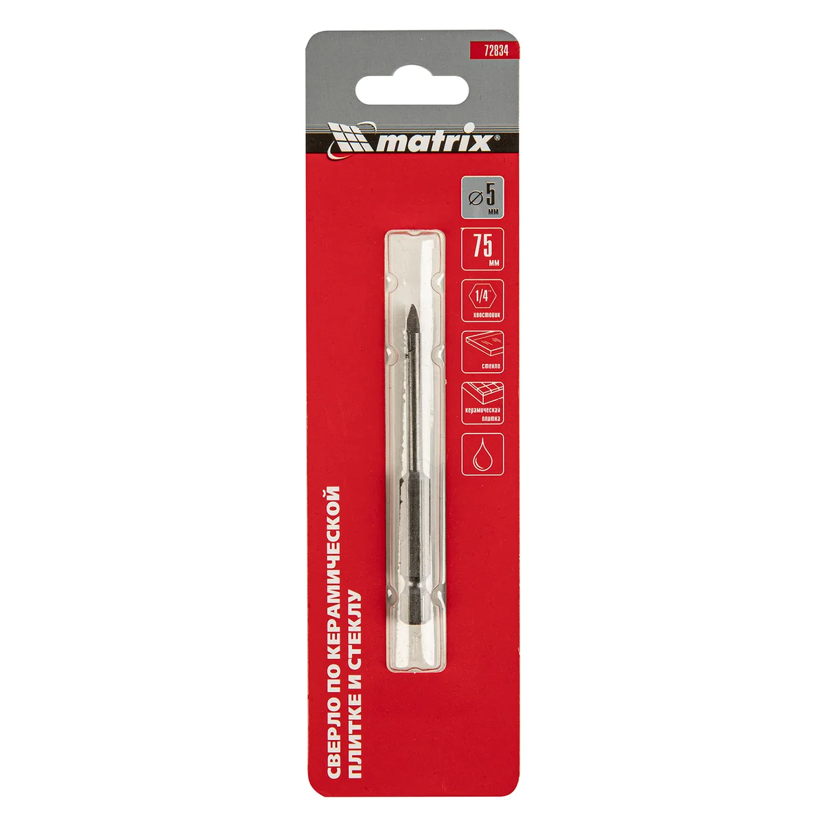 Сверло по керамической плитке и стеклу, 5 мм, шестигранный хвостовик// Matrix 72834
