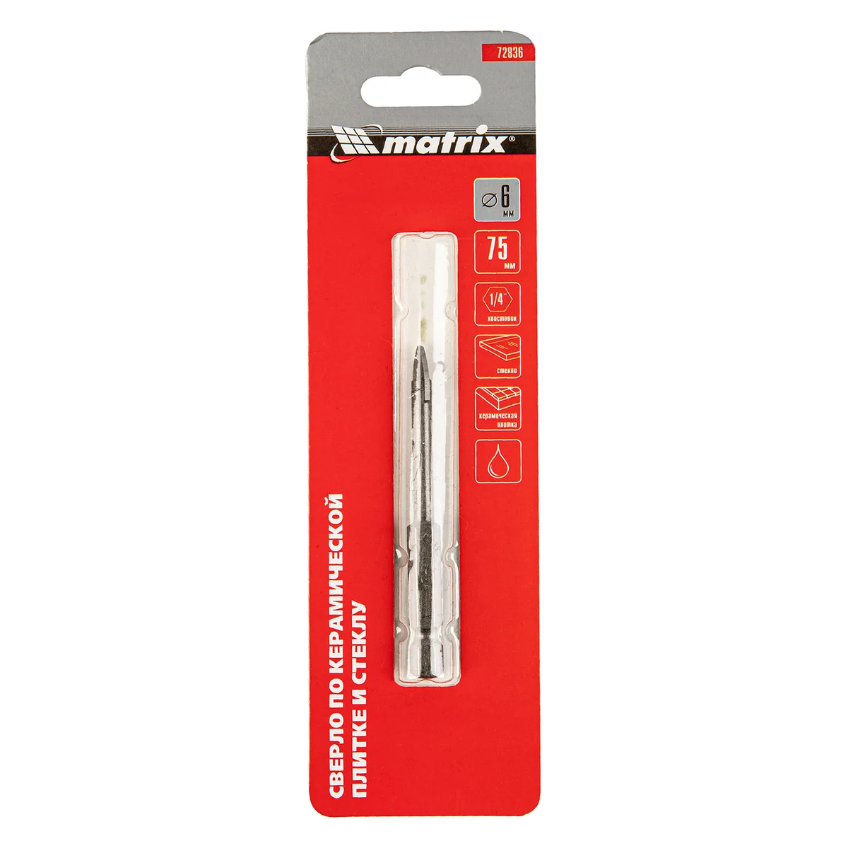 Сверло по керамической плитке и стеклу, 6 мм, шестигранный хвостовик// Matrix 72836