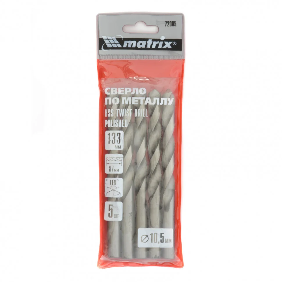 Сверло по металлу, 10.5 мм, полированное, HSS, 5 шт, цилиндрический хвостовик Matrix 72005
