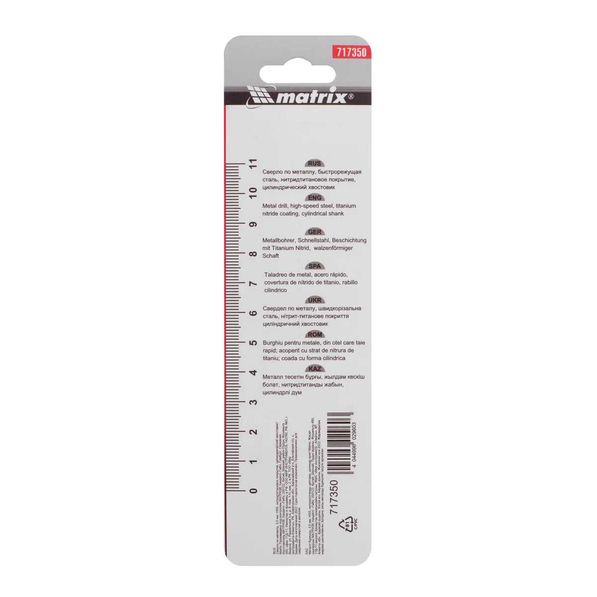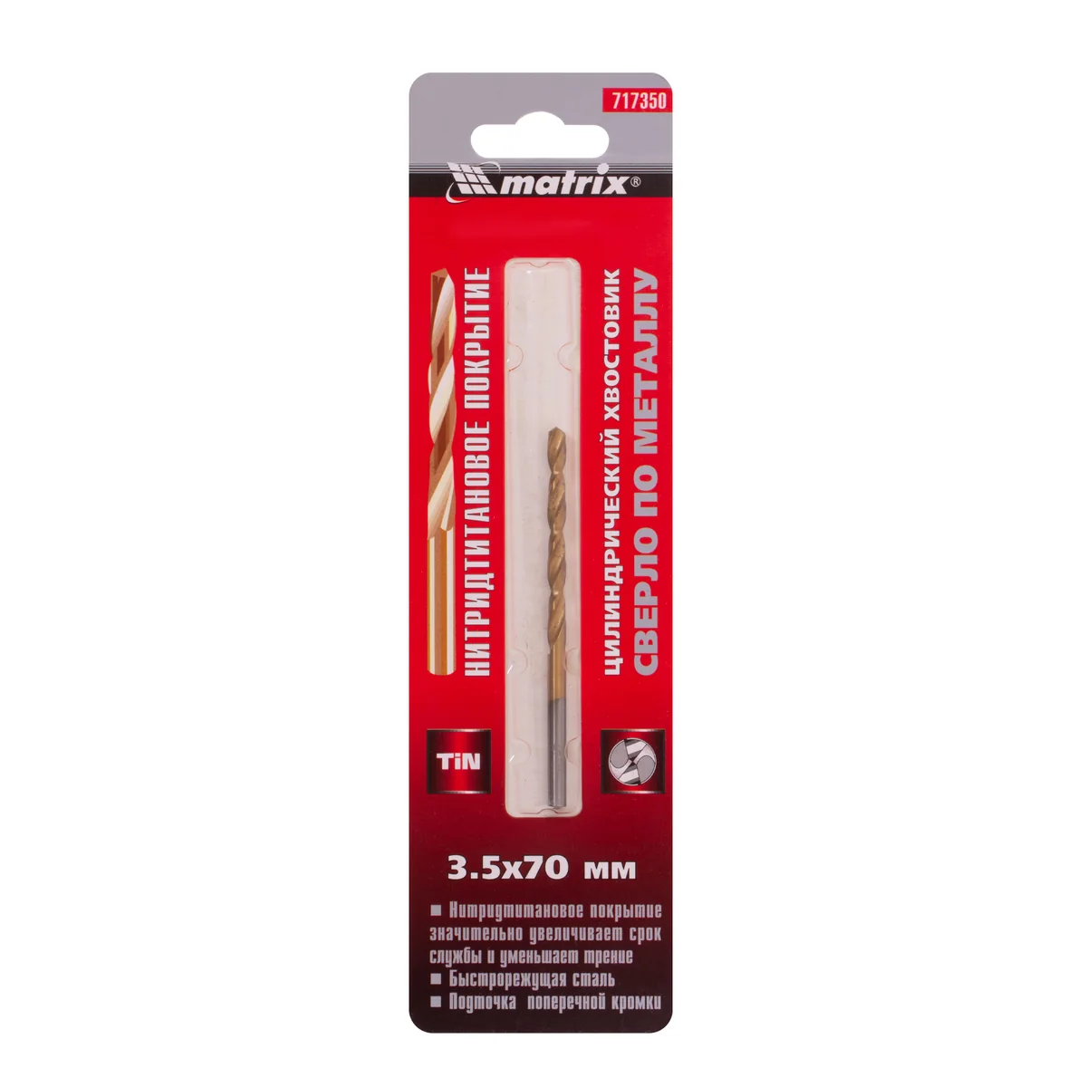 Сверло по металлу, 3.5 мм, HSS, нитридтитановое покрытие, цилиндрический хвостовик Matrix 717350