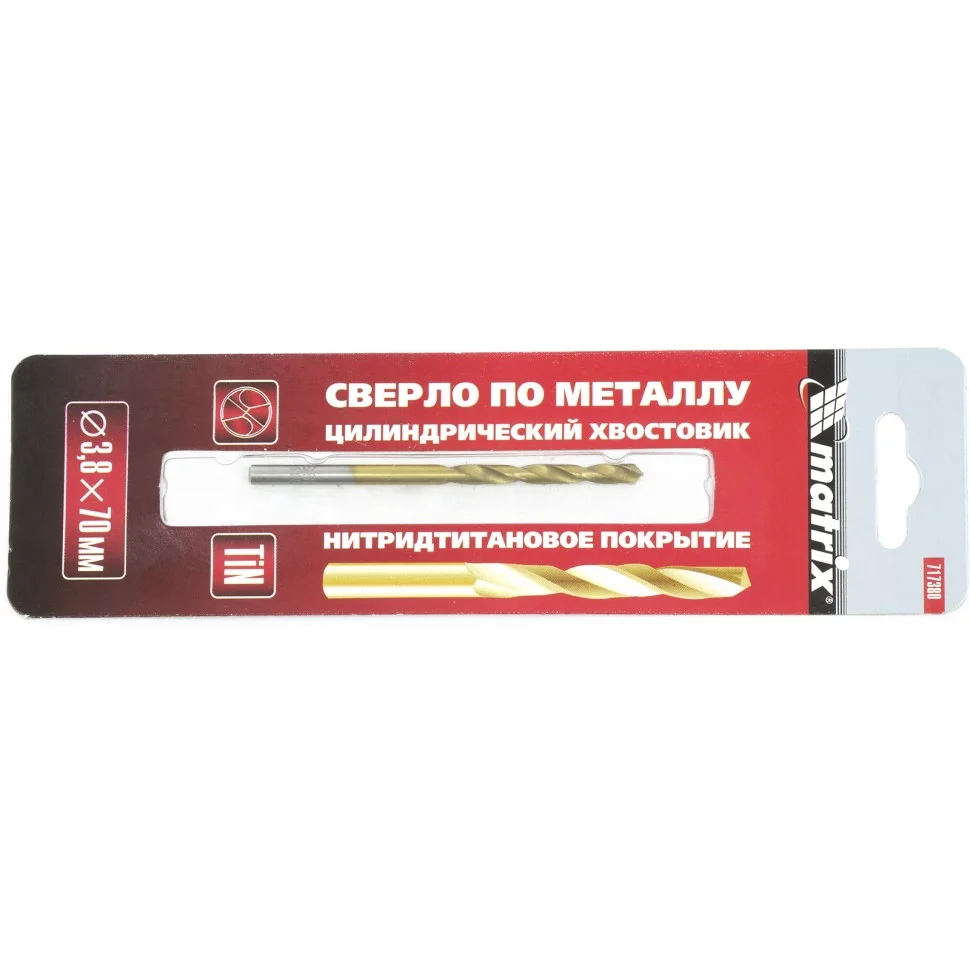 Сверло по металлу, 3.8 мм, HSS, нитридтитановое покрытие, цилиндрический хвостовик Matrix 717380