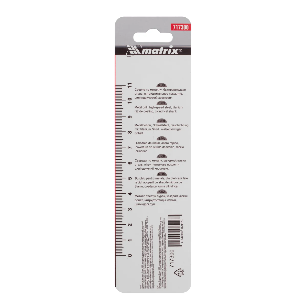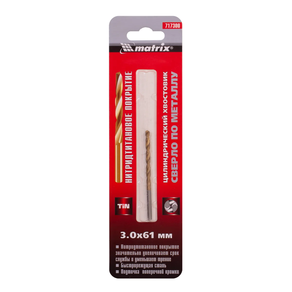 Сверло по металлу, 3 мм, HSS, нитридтитановое покрытие, цилиндрический хвостовик Matrix 717300