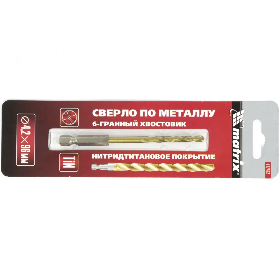 Сверло по металлу, 4.2 мм, HSS, нитридтитановое покрытие, шестигранный хвостовик Matrix 717422