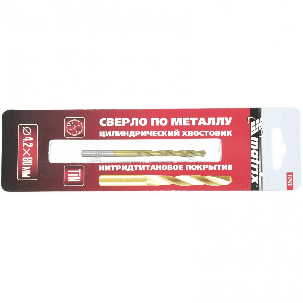 Сверло по металлу, 4.2 мм, HSS, нитридтитановое покрытие, цилиндрический хвостовик Matrix 717420