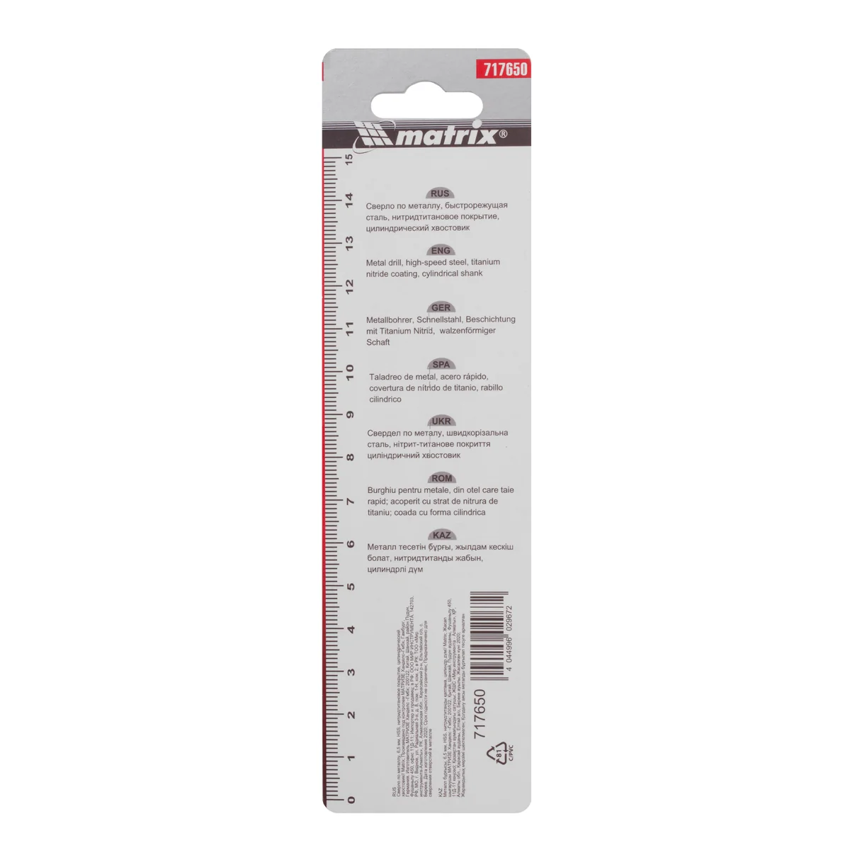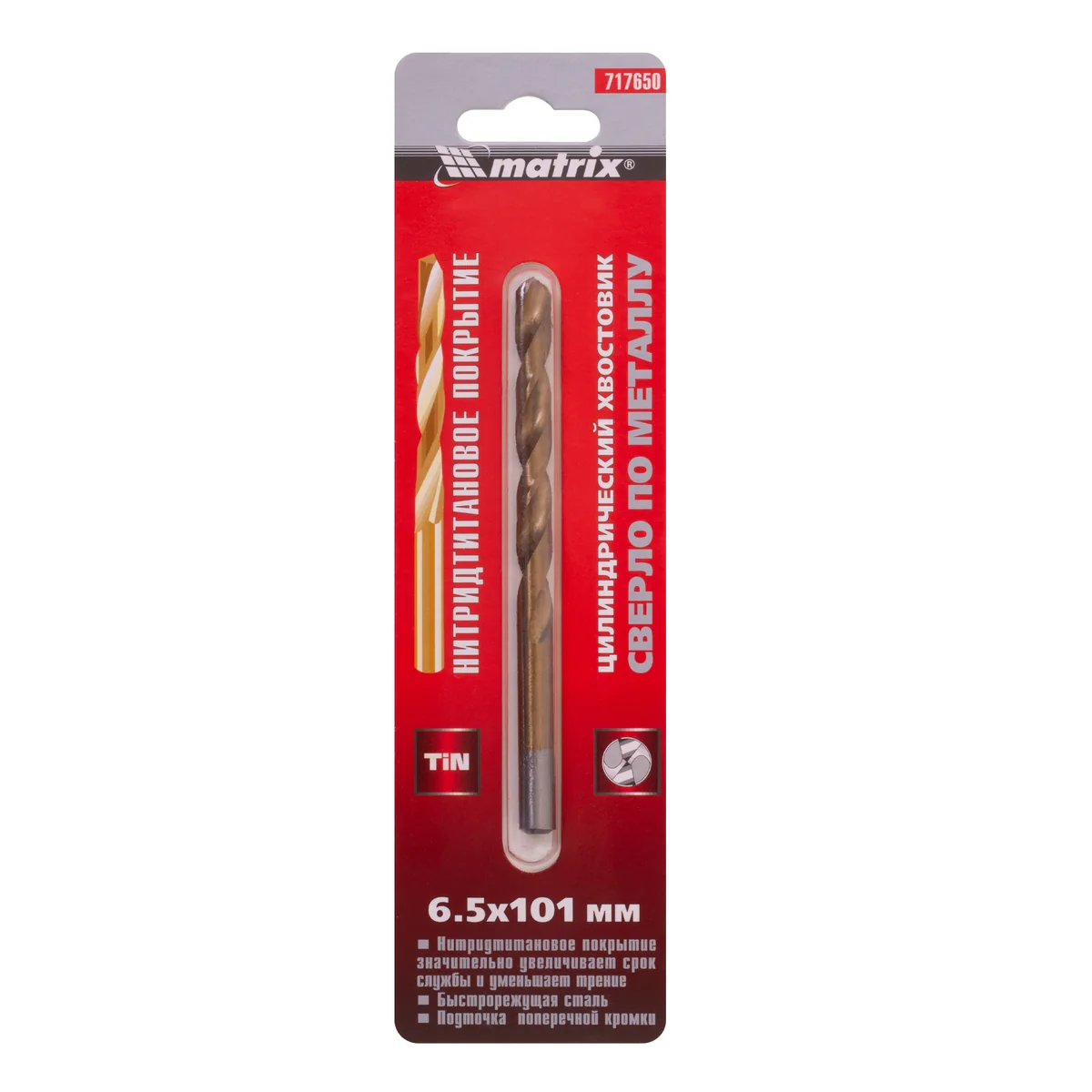 Сверло по металлу, 6.5 мм, HSS, нитридтитановое покрытие, цилиндрический хвостовик Matrix 717650