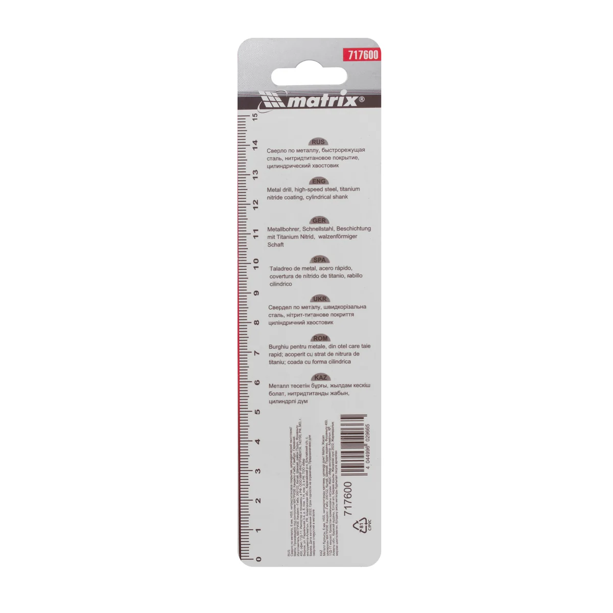 Сверло по металлу, 6 мм, HSS, нитридтитановое покрытие, цилиндрический хвостовик Matrix 717600