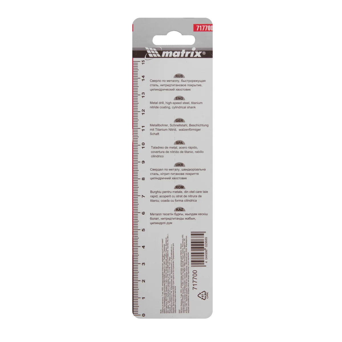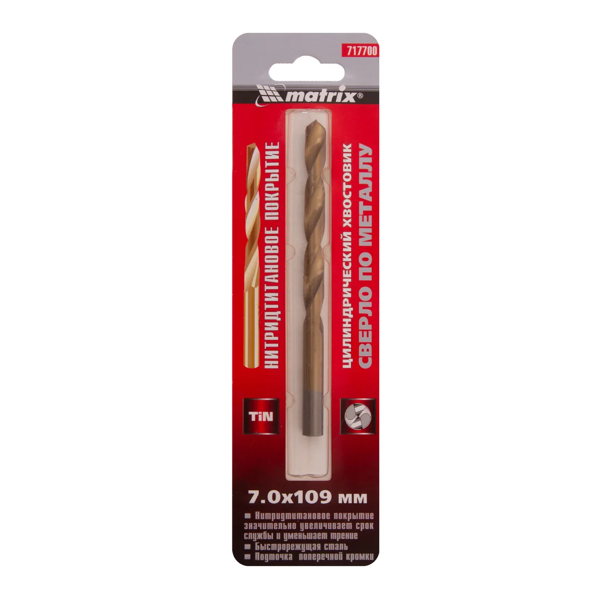 Сверло по металлу, 7 мм, HSS, нитридтитановое покрытие, цилиндрический хвостовик Matrix 717700