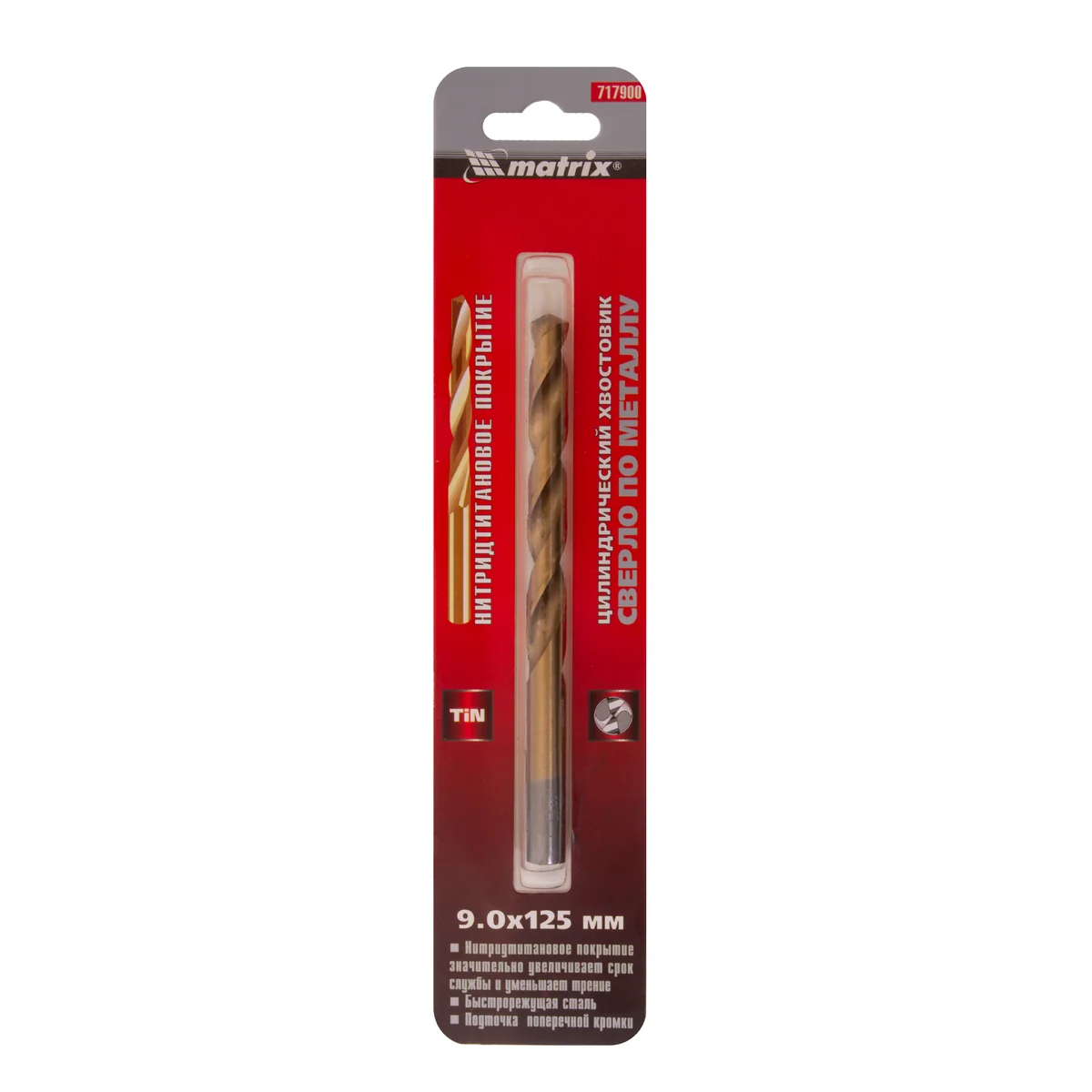 Сверло по металлу, 9 мм, HSS, нитридтитановое покрытие, цилиндрический хвостовик Matrix 717900