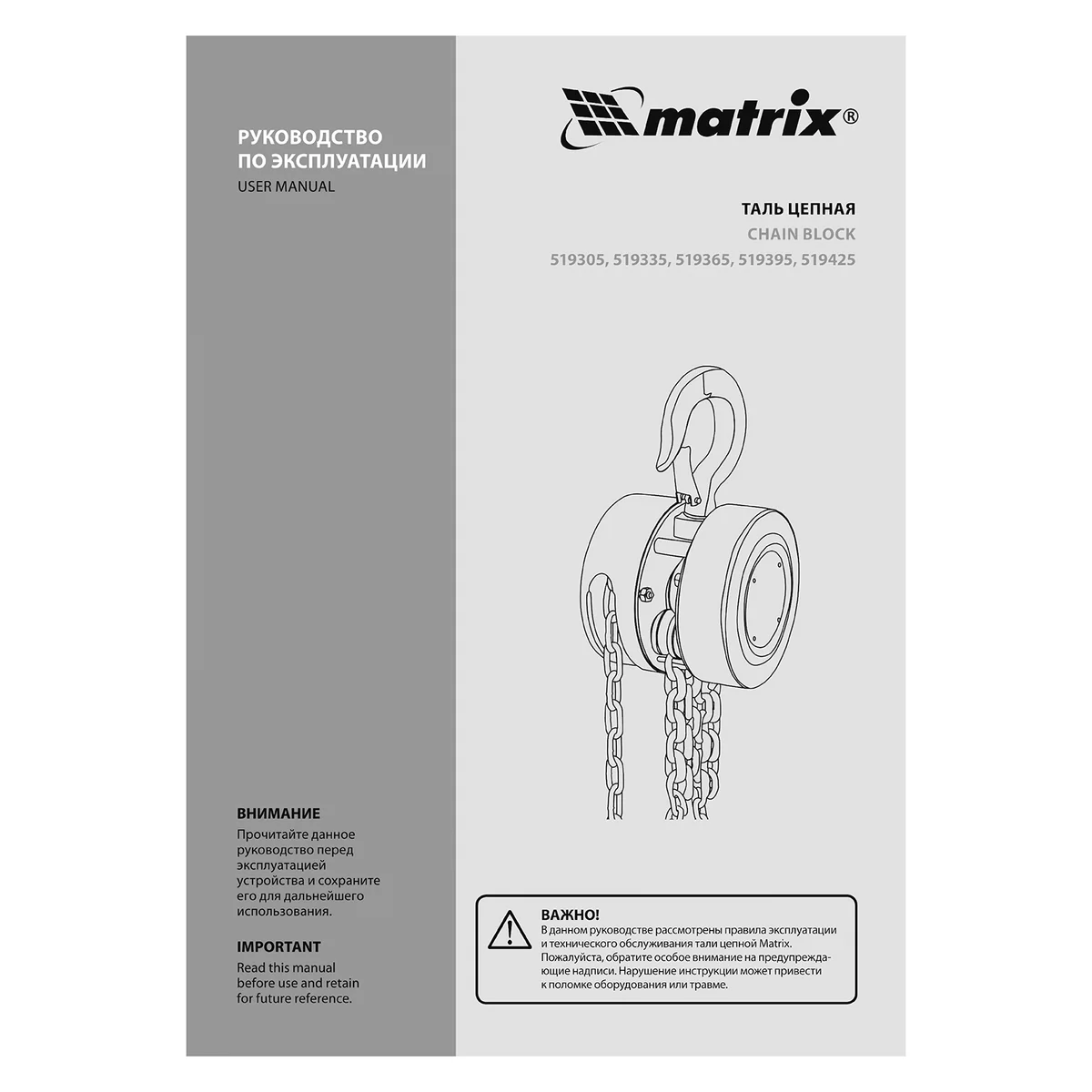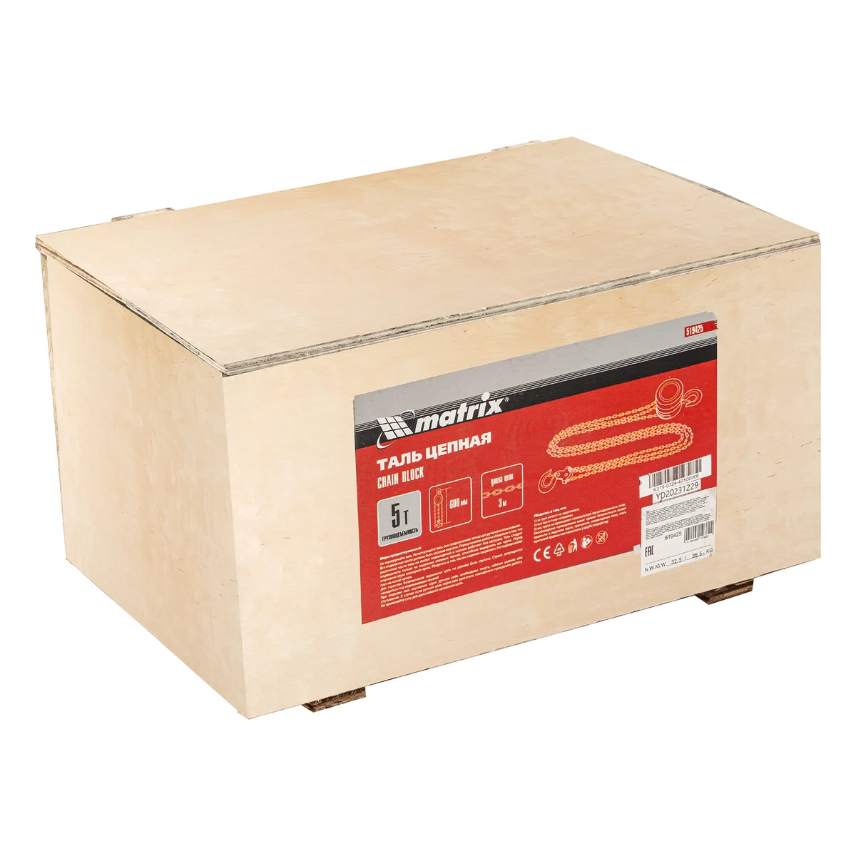 Таль цепная, 5 т, H подъема 3 м, расстояние между крюками 600 мм Matrix 519425
