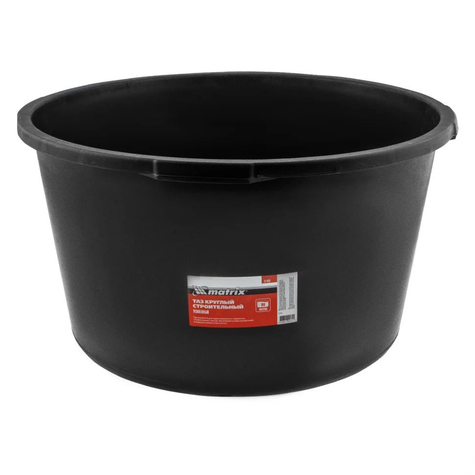 Таз круглый строительный усиленный Matrix 81469 объемом 90 л предназначен для замешивания строительных растворов любого типа при проведении ремонтно-отделочных работ. Благодаря диаметру 662 мм для приготовления смеси удобно использовать различный отделочный инструмент (шпатели, кисти). Пригодится такой таз и в быту: он удобен для хранения сыпучих материалов, сбора и утилизации мусора, проведения влажной уборки.ПреимуществаНадежность — таз изготовлен из качественного полипропилена, который придает изделию особую легкость и прочность.Удобная транспортировка — таз оснащен усиленными ручками для перемещения.Морозостойкость — изделие устойчиво к низким температурам.Простой уход — за изделием легко ухаживать, достаточно промыть проточной водой или с использованием моющих средств.