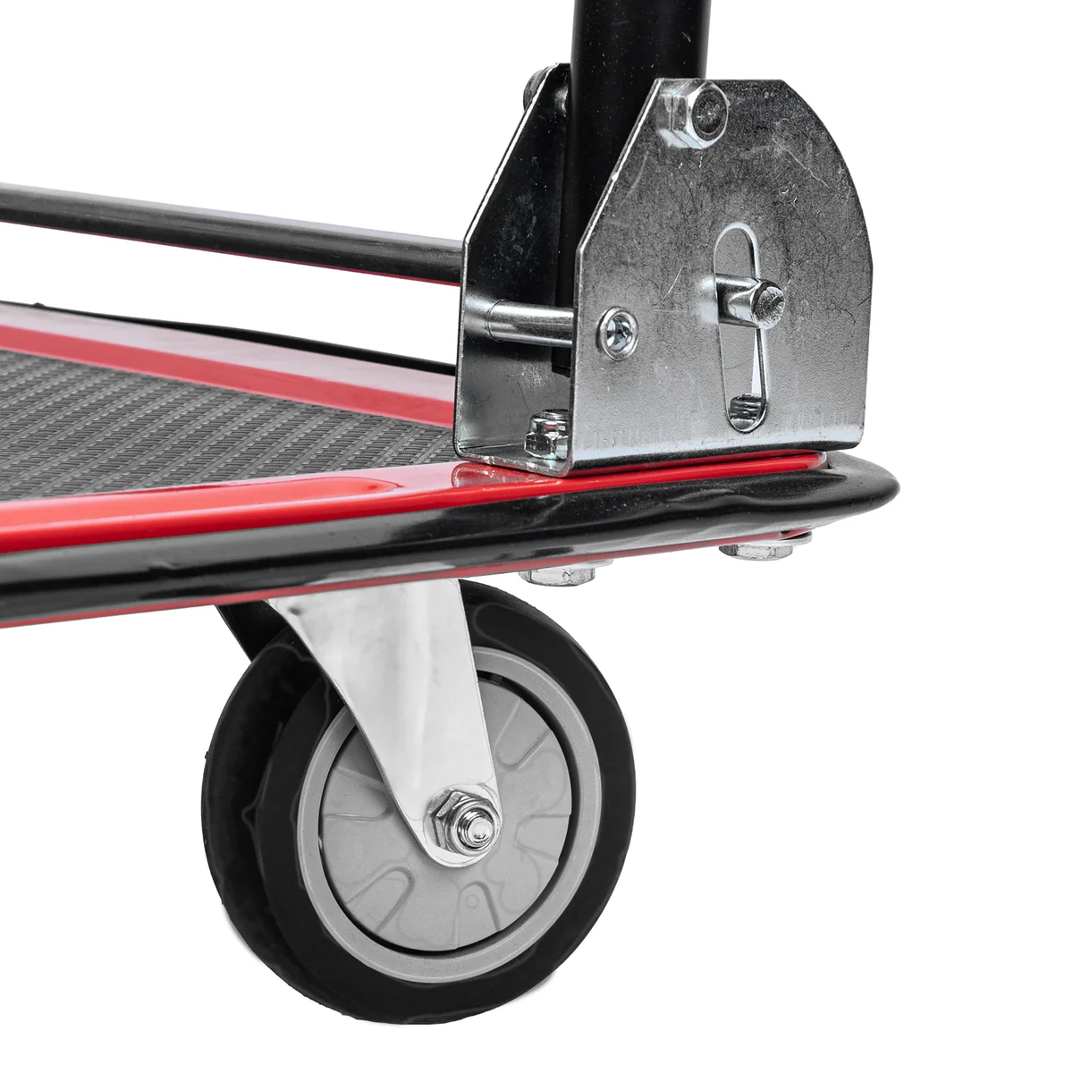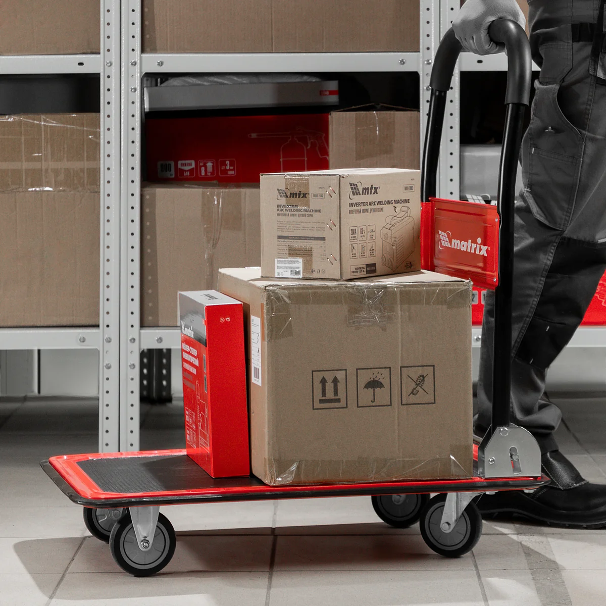 - Компактность — благодаря складной платформе тележка не занимает много места во время хранения и транспортировки.