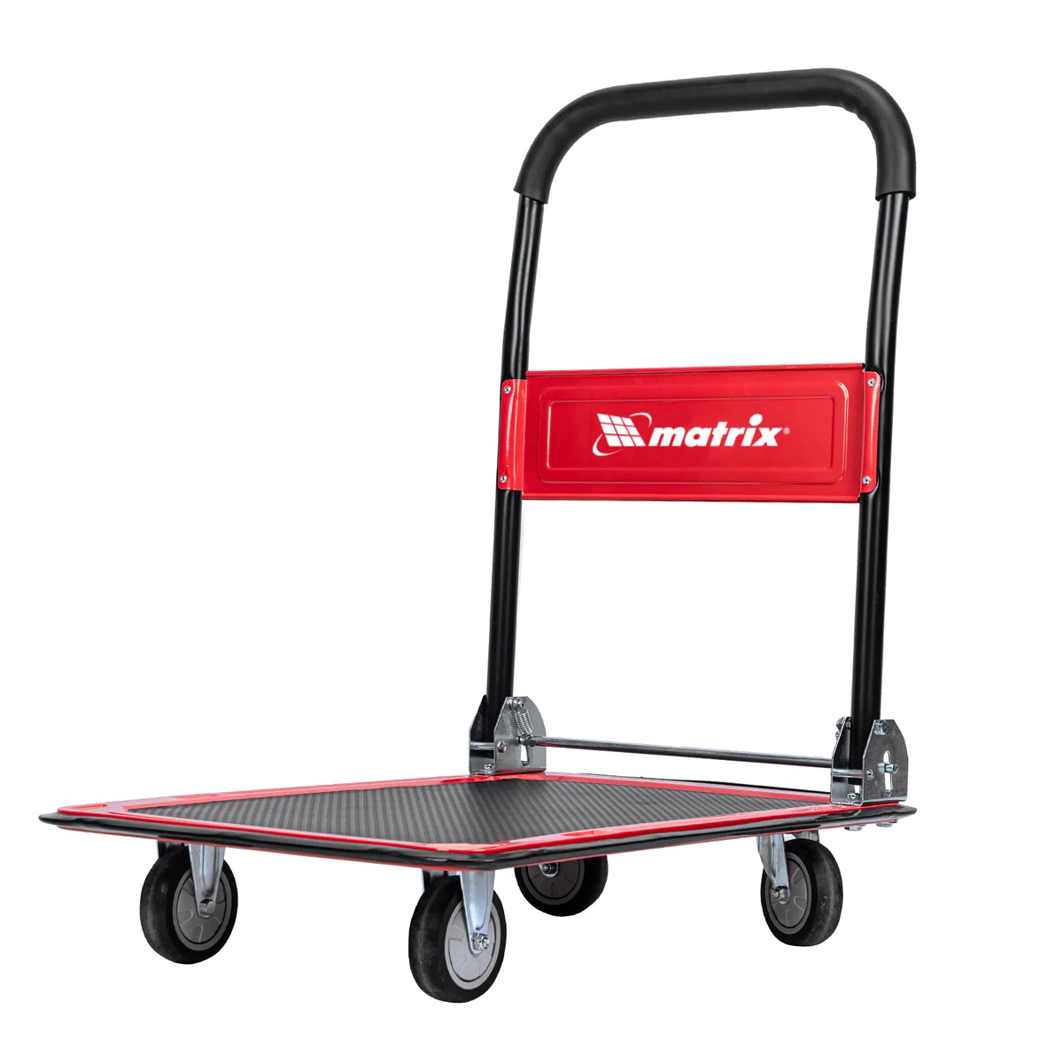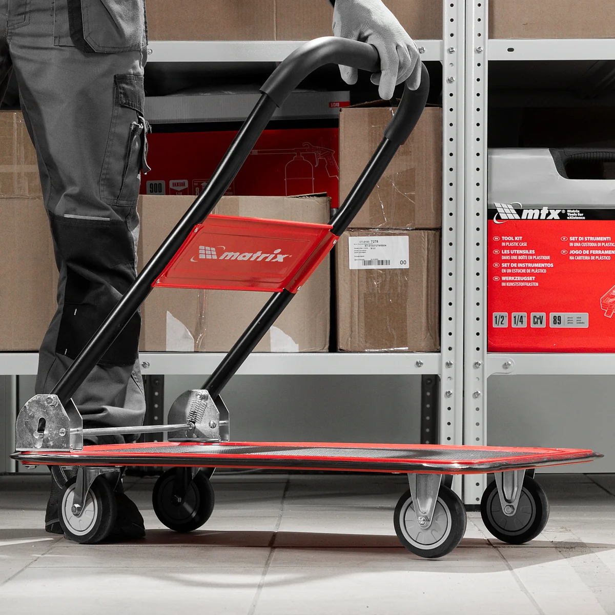 Хозяйственная тележка Matrix 98211 предназначена для перемещения грузов массой до 150 кг. На платформе размером 730 x 475 мм можно разместить даже крупногабаритные предметы.