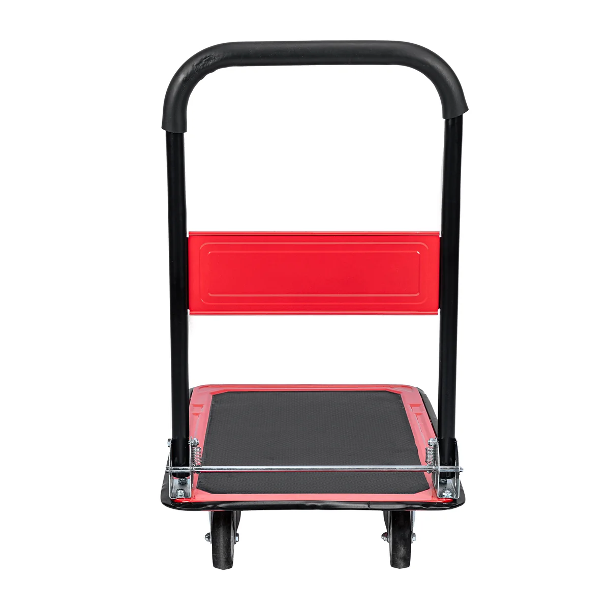 - Продуманная конструкция — противоскользящее покрытие платформы препятствует смещению груза во время транспортировки.