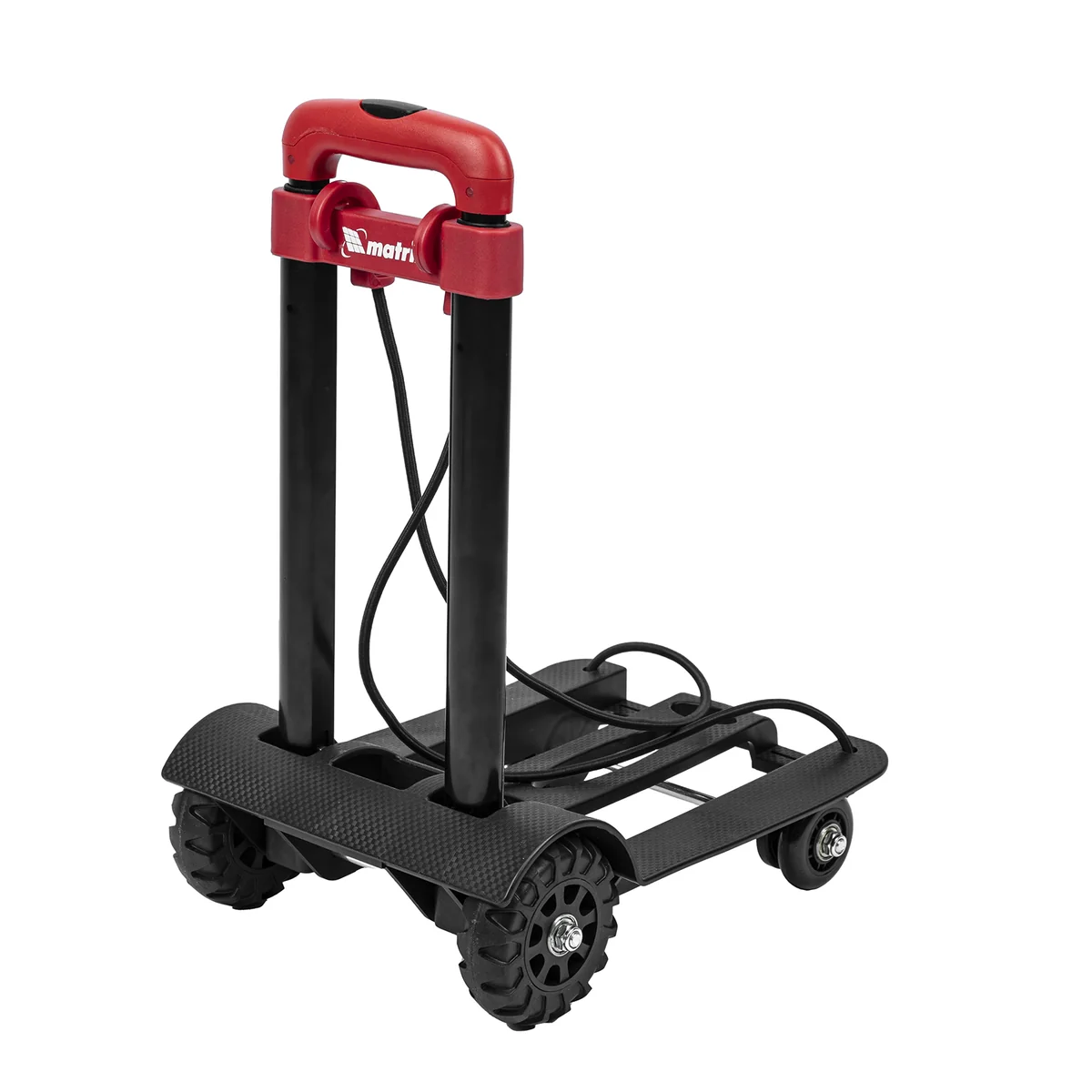 Складная хозяйственная 4-колесная тележка Matrix 98205 предназначена для перемещения грузов массой до 40 кг. Телескопическая рукоятка позволяет регулировать высоту тележки в соответствии с ростом пользователя. Для размещения груза предусмотрена платформа размером 230 x 250 мм.