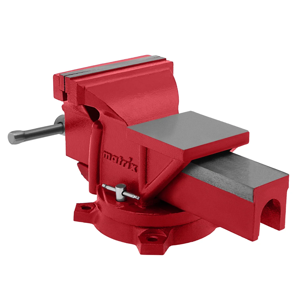 Поворотные слесарные тиски Matrix 18602 с наковальней и губками шириной 150 мм имеют рабочий ход 160 мм и предназначены для захвата и фиксации различных деталей. Поворотный механизм с прижимными винтами позволяет вращать тиски на 360° и фиксировать их в выбранном положении для удобной обработки заготовок с разных сторон. Инструмент используется для шлифовки, сверления и проведения других работ. Будет полезен в мастерской и гараже.ПреимуществаПрочность — корпус выполнен из чугуна, прижимные губки — из стали 45 твердостью 45-53 HRC.Коррозионная стойкость — тиски покрыты защитной порошковой эмалью.Надежная фиксация — губки с рельефной поверхностью не скользят по поверхности заготовки.Дополнительные возможности — на корпусе имеется наковальня для выполнения небольших ударных работ.Защита поверхности заготовок — на губки можно установить накладки из более мягкого материала (не входят в комплект поставки).Простой монтаж — в основании имеются отверстия для крепления к верстаку.