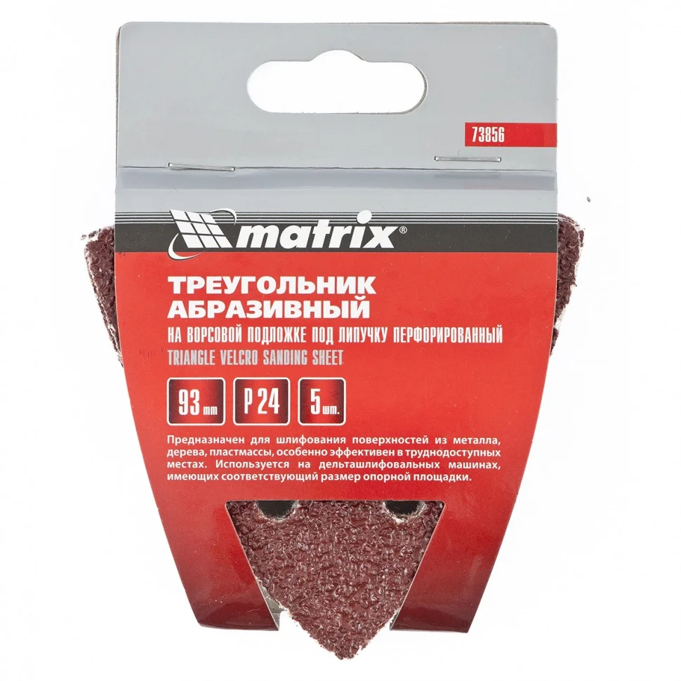 Треугольник абразивный на ворсовой подложке под "липучку", перфорированный, P 240, 93 мм, 5 шт Matrix 73866