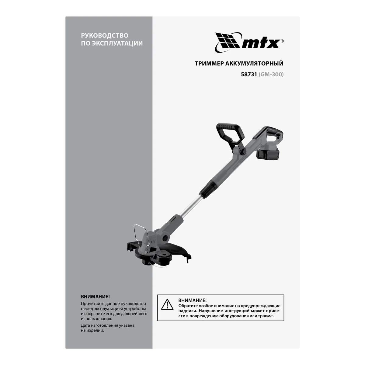 Триммер аккумуляторный GM-300, Li-Ion, 20 В MTX 58731