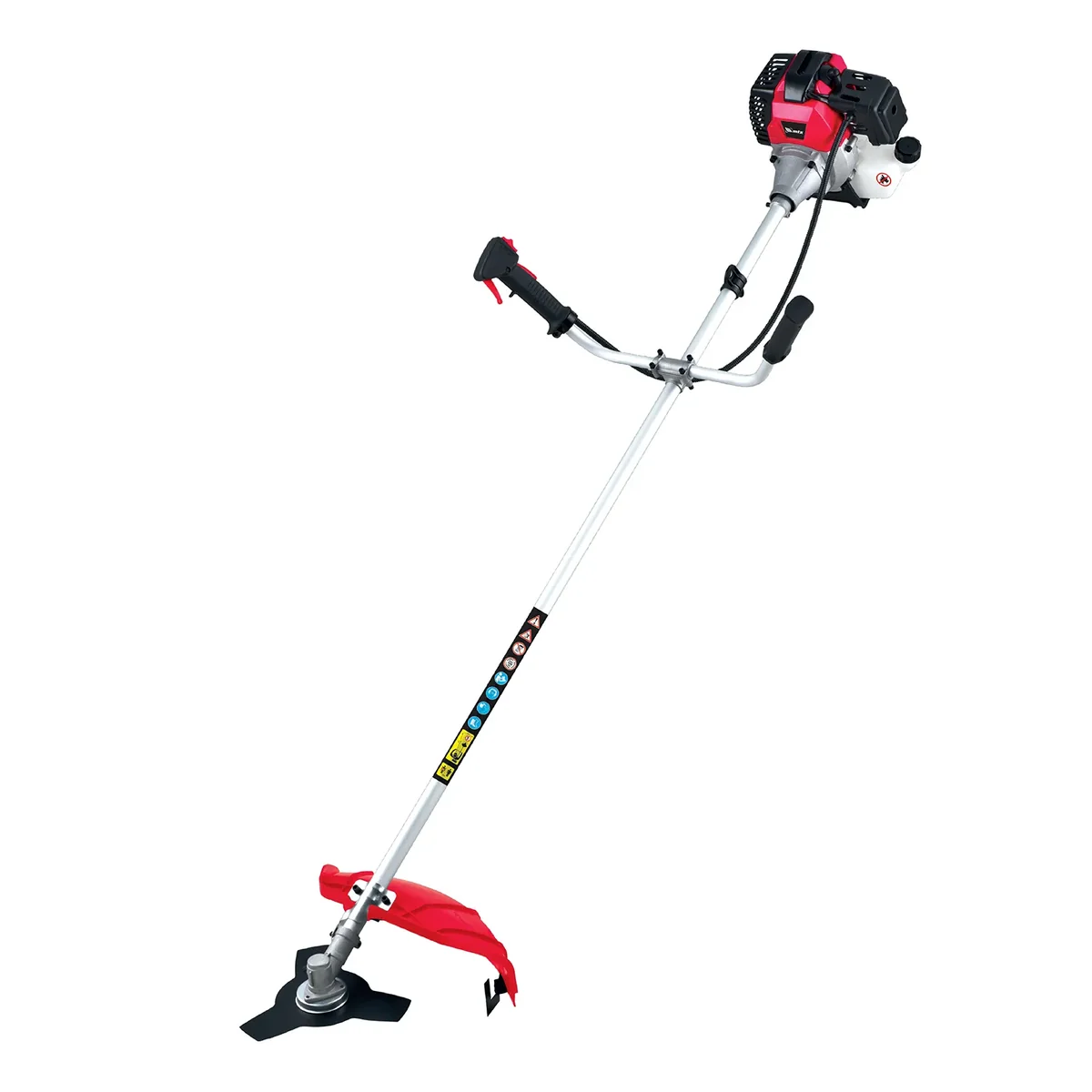 - Безопасность — производитель предусмотрел блокировку курка газа для предотвращения случайного запуска, защитный кожух препятствует вылету травы, веток, камней в сторону пользователя.