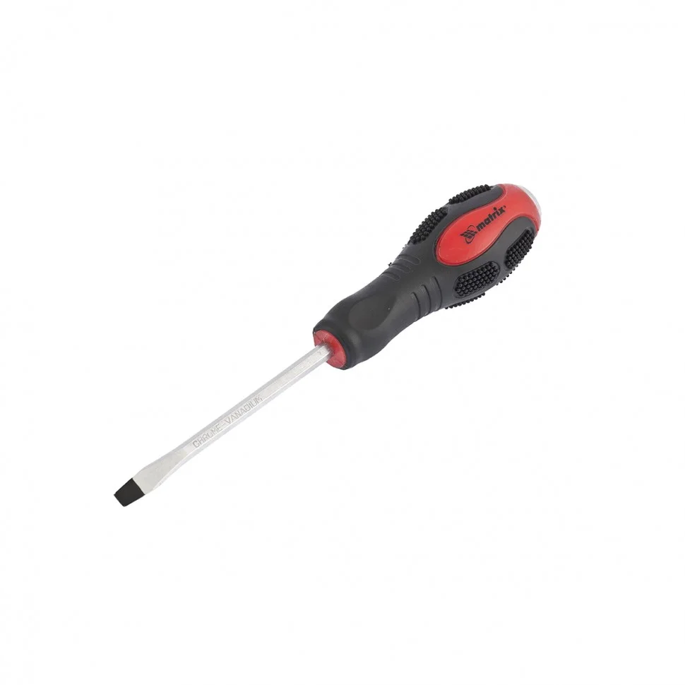 Ударная отвертка Matrix 19117, SL8 x 150 мм, с двухкомпонентной рукояткой, из стали CrV, применяется для монтажа крепежных элементов, а также демонтажа заржавевших или перетянутых резьбовых соединений типа Slotted. Металлический затыльник на рукоятке позволяет работать совместно с молотком или киянкой. Профессиональная отвертка будет полезна на строительной площадке, в мастерской, гараже, пригодится и дома. Стержень длиной 150 мм обеспечивает возможность работы с крепежом в углублениях.ПреимуществаПрочность и долговечность — стержень выполнен из хромованадиевой стали и закален для повышения твердости.Усиленный шестигранный стержень — такая конструктивная особенность обеспечивает высокую сопротивляемость ударным нагрузкам.Надежность — стержень проходит сквозь всю рукоятку.Фосфатированный кончик — шлиц стержня защищен от коррозии и обеспечивает улучшенное сцепление с головкой крепежа.Надежное удержание инструмента — двухкомпонентная рукоятка имеет выступы, препятствующие проскальзыванию отвертки в руках.