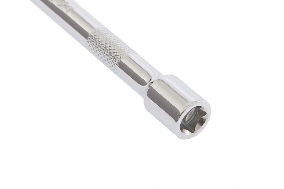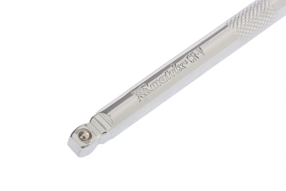 Удлинитель Matrix 13970 длиной 100 мм, из стали CrV, полированный хром, с посадочным местом и присоединительным квадратом 1/4 дюйма, используется для монтажа и демонтажа резьбовых соединений в труднодоступных местах. Благодаря особой конструкции присоединительного квадрата позволяет работать с крепежами, расположенными под углом. Удлинитель пригодится для выполнения слесарных работ и ремонта автомобилей.ПреимуществаУдлинитель изготовлен из стали хромованадиевой группы, что обеспечивает ему устойчивость к высоким нагрузкам.Полированное хромовое покрытие увеличивает износостойкость изделия и защищает его от коррозии.Шариковый фиксатор надежно удерживает насадку во время работы.