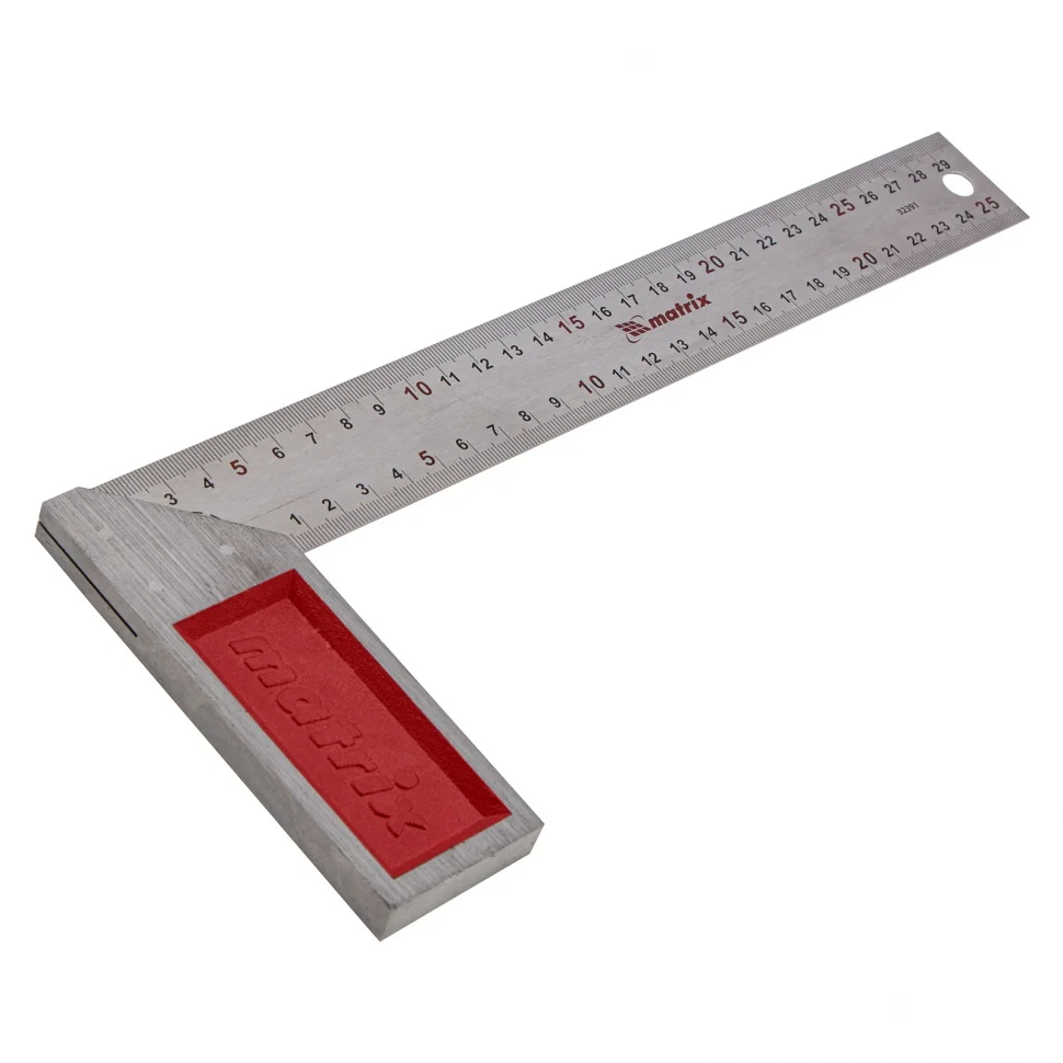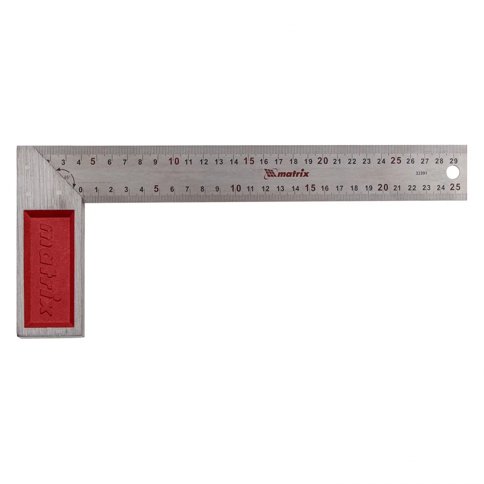 Стальной угольник Matrix 32391 длиной 300 мм, с градуировкой, — это измерительный инструмент для контроля и построения углов. Будет полезен мастерам в ходе проведения столярных и строительных работ.ПреимуществаСтальная конструкция угольника обладает необходимыми прочностными характеристиками.Основание инструмента окрашено, это обеспечивает защиту от коррозии.Разметка нанесена на обе стороны полотна для удобства эксплуатации.Угольник имеет отверстие в профиле для компактного подвесного хранения.