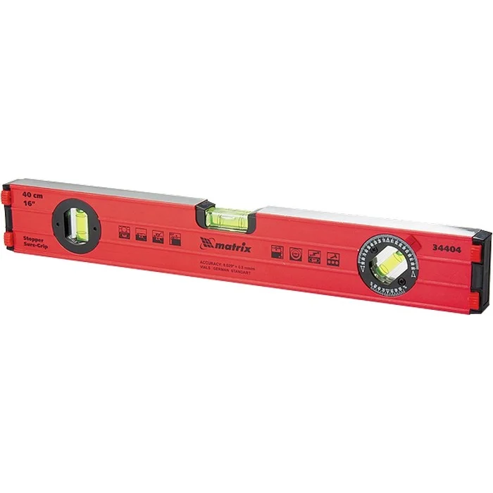 Усиленный профиль с двумя фрезерованными измерительными поверхностями и ребрами жесткости,Пластиковые заглушки на концах имеют резиновые вставки, предотвращающие скольжение при измерениях на наклонных плоскостях,Модель имее
