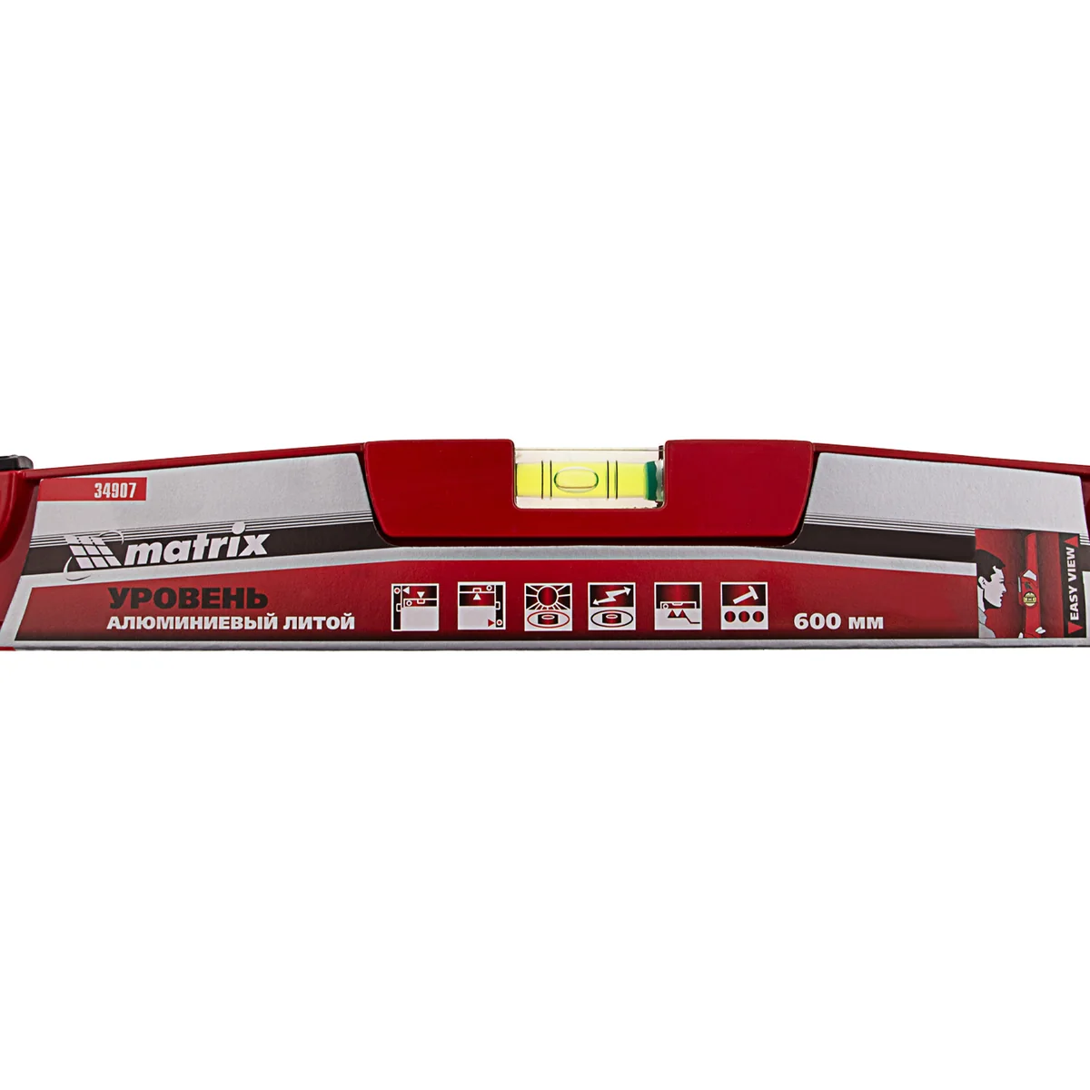 Уровень алюминиевый, 600 мм, литой, 2 глазка (1 фронтальный), ударная площадка Matrix 34907