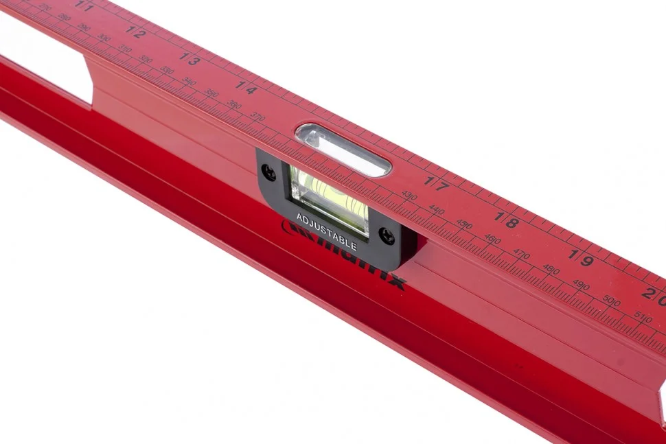 Усиленный алюминиевый уровень Matrix «Рельс» 34010 длиной 1000 мм снабжен 3 глазками для проверки поверхностей относительно горизонтальной и вертикальной плоскостей. Поворотный глазок уровня позволяет выстроить угол 45 градусов. Инструмент поможет выдержать все плоскости идеально ровными, поэтому пригодится строителям, отделочникам, бетонщикам и другим специалистам.Для определения отклонения вертикали 90 градусов необходимо использовать пузырьковую ампулу только в верхнем положении уровня. Только базовая поверхность является рабочей (противоположная ампуле 180 градусов).ПреимуществаДвутавровый алюминиевый профиль обеспечивает конструкционную прочность и жесткость инструмента.Подошва V-образной формы позволяет закрепить уровень на трубе для проведения сантехнических работ.Инструмент имеет фрезерованную подошву, это снижает погрешность измерений до 1 мм/м (0,057 градуса).