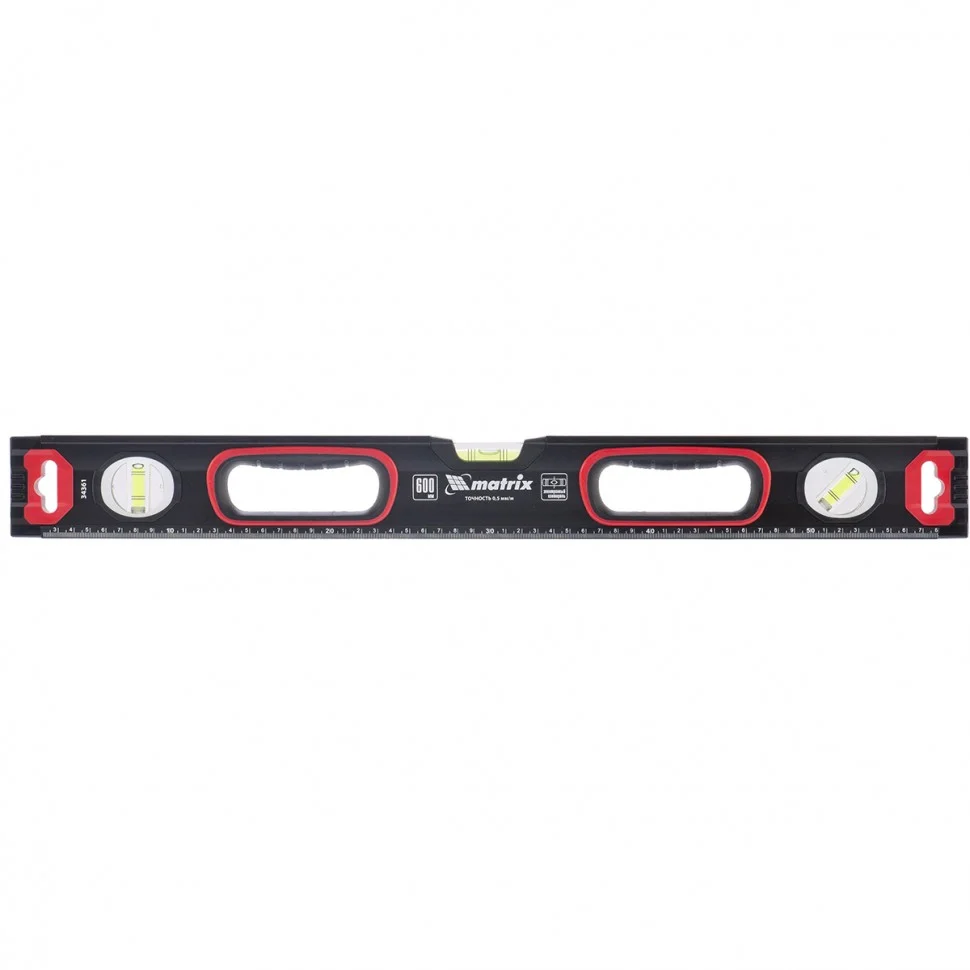 Уровень алюминиевый, усиленный, фрезерованный, 3 глазка, двухкомпонентные рукоятки, 1500 мм Matrix 34365