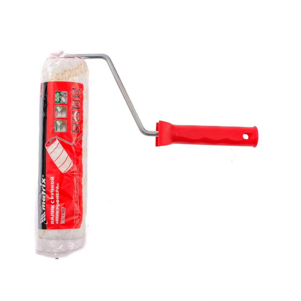 Валик Matrix «МИКРОФИБРА» 80773, 250 х 48 мм, с ворсом 12 мм из полиэстера и бюгелем 8 мм, используется для проведения подготовительных и малярных работ по дереву, стенам, потолкам. Он подходит для нанесения невязких материалов: пропиток, грунтовок, лазури, дисперсионных красок, антисептиков и др. Шубка с ворсом длиной 12 мм оптимальна для большинства поверхностей, в том числе шероховатых.ПреимуществаВысокое качество окрашивания — бесшовная шубка с остриженными краями не оставляет следов, хорошо впитывает и переносит краску, а благодаря свободно вращающемуся ролику валик максимально отдает ЛКМ на поверхность.Быстросъемное крепление — бюгель можно использовать с разными типами валиков, которые легко снимаются для очистки и замены.Прочность и долговечность — шубка приклеена на ролик с использованием технологии Termofusion, а бюгель оцинкован для предотвращения коррозии.Быстрое окрашивание больших поверхностей — валик имеет ширину 250 мм и диаметр 48 мм.