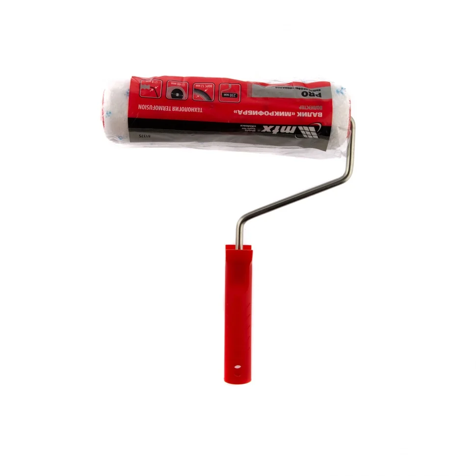 Валик MTX PRO «МИКРОФИБРА» 81375 шириной 250 мм, с ворсом из полиэстера 12 мм, диаметром 48 мм и бюгелем 8 мм, предназначен для подготовки поверхностей под покраску и проведения малярных работ. Применяется для нанесения защитных пропиток, грунтовок, антисептиков, лазури на потолки, стены, дерево. Наиболее эффективно используется для работы с высокотекущими лакокрасочными материалами. Длина ворса позволяет равномерно обрабатывать шероховатые поверхности, а ширина валика оптимальна для работ на больших участках.ПреимуществаШубка валика сделана из высококачественного микроволокна на тканой основе, которое восстанавливает свою форму после прокатки и хорошо распределяет лакокрасочный материал по поверхности без разбрызгивания и образования подтеков.Бесшовная шубка с остриженными краями не оставляет полос при окрашивании.Ролик вращается на бюгеле свободно, что улучшает краскообменные свойства валика.Благодаря быстросъемной конструкции валик легко снимать с бюгеля для замены или очистки.Оцинкованный бюгель устойчив к коррозии, поэтому инструмент долговечен.Термически приклеенная шубка крепко держится на основании и выдерживает интенсивное использование.Валик изготовлен на современном оборудовании с применением новейших технологий и прошел многоступенчатый контроль качества, что гарантирует его надежность и высокую производительность.