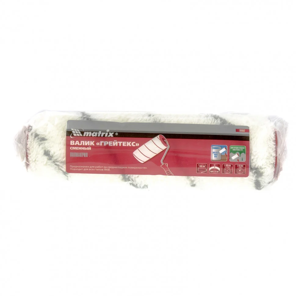 Сменный валик Matrix «ГРЕЙТЕКС» 80892 с ворсом 12 мм из полиакрила, шириной 180 мм и диаметром 36 мм, совместим с бюгелем 6 мм. Применяется для подготовки поверхностей под покраску и малярных работ с ЛКМ любого типа. Полиакриловая шубка устойчива к растворителям, за счет увеличенной плотности хорошо впитывает краску и обеспечивает ее равномерное нанесение.ПреимуществаПрочность и долговечность — ворс из полиакрила отличается хорошей формостойкостью и не боится разрывных нагрузок.Эффективная работа — ролик свободно вращается на бюгеле, что обеспечивает максимальную отдачу ЛКМ на поверхность.Высокий ресурс — шубка приклеена на ролик по технологии Termofusion, поэтому выдерживает интенсивное использование.Качественное окрашивание — шубка не имеет шва, ворс по краям острижен, поэтому на поверхности не остается следов и полос.Легкая установка — валик крепится на бюгель за несколько секунд благодаря быстросъемной конструкции.Быстрая обработка больших поверхностей — валик имеет ширину 180 мм.