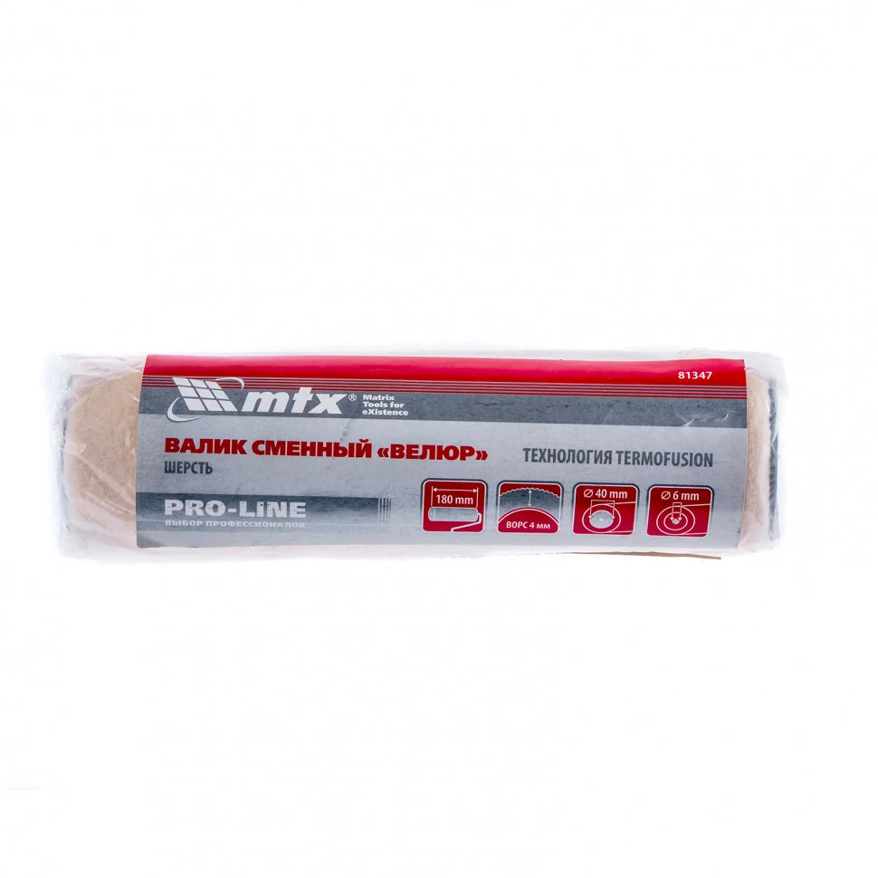 Валик сменный MTX PRO «ВЕЛЮР» 81347 с ворсом 4 мм из шерсти 50% и полиакрила 50%, шириной ролика 180 мм и диаметром 40 мм устанавливается на бюгель 6 мм. Используется при лакировании полов и гладкой древесины. Коротковорсовая шубка подходит для нанесения финишного покрытия и оптимальна для работы с алкидными и эпоксидными лаками, а также защитными составами на основе растворителей.ПреимуществаЗа счет 50% содержания шерсти ворс хорошо впитывает лакокрасочный состав и обеспечивает его равномерное нанесение на поверхность.Полиакрил износостоек, это продлевает срок службы валика.Декоративное покрытие наносится без дефектов благодаря бесшовной шубке с обработанными краями.Шубка крепко держится на ролике, поскольку при ее фиксации использована технология Termofusion.Благодаря быстросъемной конструкции валик легко снимается с бюгеля для очистки или замены на новый.Валик произведен по новейшей технологии, что гарантирует его высокое качество.