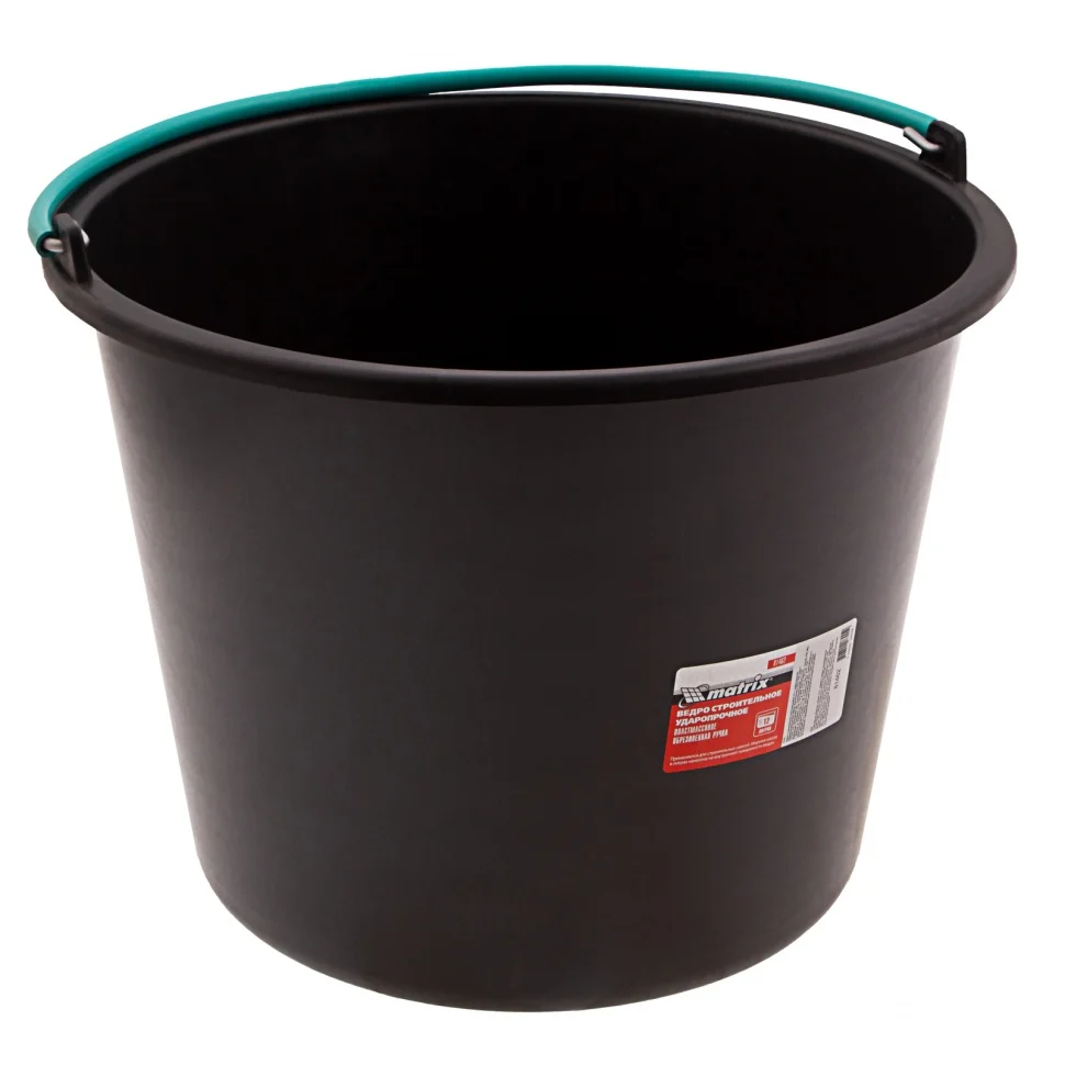 Ведро строительное пластмассовое 12 л, ударопрочное, обрезиненная ручка Matrix 81462