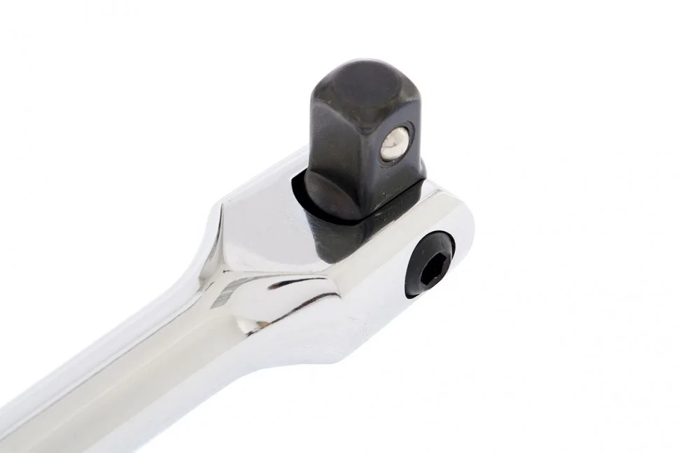 Хромированный однорычажный вороток Matrix 14066, 380 мм, с квадратом 1/2 дюйма на шарнире, CrV, используется совместно с торцевыми головками. Инструмент позволяет закручивать и откручивать болты и гайки. Он пригодится дома, на даче, в гараже, будет полезен во время ремонта или на стройке.ПреимуществаШарнирное соединение позволяет менять угол наклона воротка на 180° и облегчает работу в труднодоступных местах.Рычаг длиной 380 мм создает значительный крутящий момент, благодаря чему эффективно справляется с задачами любой сложности.Инструмент изготовлен из хромованадиевой стали, что гарантирует его прочность и долговечность.Хромовое покрытие надежно защищает вороток от возникновения коррозии.Шариковый фиксатор крепко удерживает насадку, не давая ей соскочить во время работы.Ручка дополнена специальными насечками, предотвращающими проскальзывание воротка в руке.