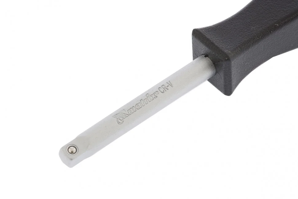 Вороток-отвертка Matrix 13920, 150 мм, квадрат 1/4 дюйма, предназначен для установки торцевых головок и работы с резьбовыми крепежами. Инструмент будет полезен во время ремонта, строительства, может использоваться для монтажа и демонтажа оборудования, при ремонте автомобилей. Вороток подходит для торцевых головок с присоединительным гнездом 1/4 дюйма.ПреимуществаПрочность - рукоятка изготовлена из ударопрочного пластика, а сам вороток из сверхпрочной хромованадиевой стали, поэтому он не сломается при сильных нагрузках.Долговечность - цинковое покрытие защищает инструмент от коррозии.Надежность - благодаря шариковому фиксатору насадка не отскочит в процессе работы.Комфортное использование - эргономичная ручка удобно лежит в руке, что уменьшает усталость.Возможность работы в труднодоступных местах - длина воротка всего 150 мм.