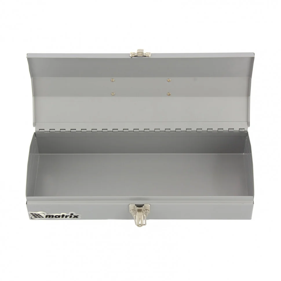 Металлический ящик Matrix 906035, 410 х 154 х 95 мм, предназначен для хранения инструментов и хозяйственных мелочей. Позволяет освободить место в шкафу, кладовке или гараже. Бокс будет полезен автолюбителю или домашнему мастеру, а также рыбаку для размещения снастей.ПреимуществаУдобная рукоятка обеспечивает комфорт при переноске металлического ящика.Прочный металлический корпус устойчив к механическим воздействиям, поэтому содержимое надежно защищено от повреждений.Ящик надежно запирается, поэтому хранящиеся в нем предметы не рассыпятся во время хранения или транспортировки.