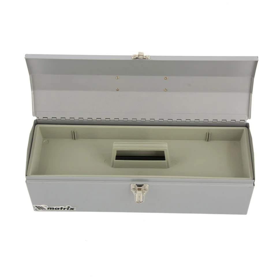 Металлический ящик Matrix 906025, 484 х 154 х 165 мм, предназначен для хранения инструментов и хозяйственных мелочей. Позволяет освободить место в шкафу, кладовке или гараже. Бокс будет полезен автолюбителю или домашнему мастеру, а также рыбаку для размещения снастей.ПреимуществаУдобная рукоятка обеспечивает комфорт при переноске металлического ящика.Прочный металлический корпус устойчив к механическим воздействиям, поэтому содержимое надежно защищено от повреждений.Съемный лоток с ручкой помогает организовать пространство внутри ящика.Ящик надежно запирается, поэтому хранящиеся в нем предметы не рассыпятся во время хранения или транспортировки.