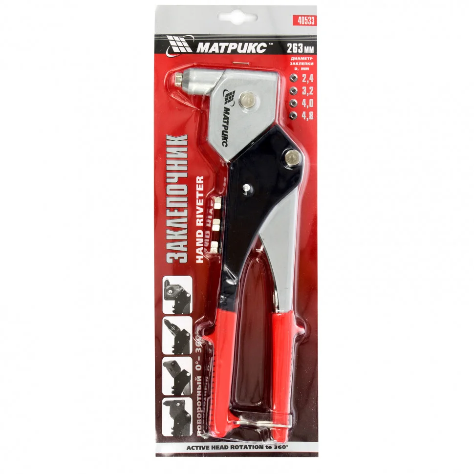 Заклепочник, 263 мм, поворотный 0-360 градусов, заклепки 2.4-3.2-4.0-4.8 мм Матрикс 40533